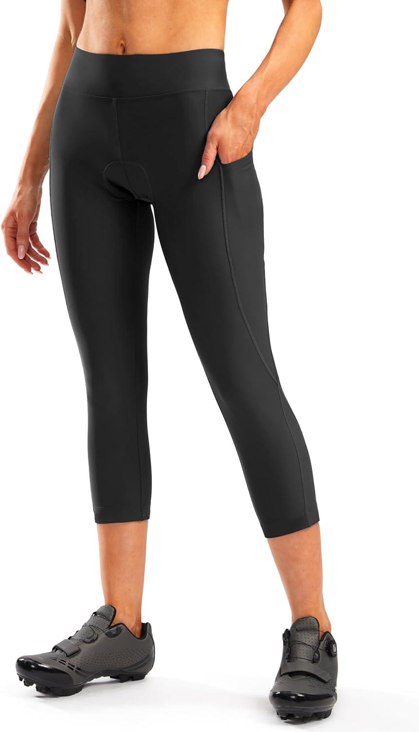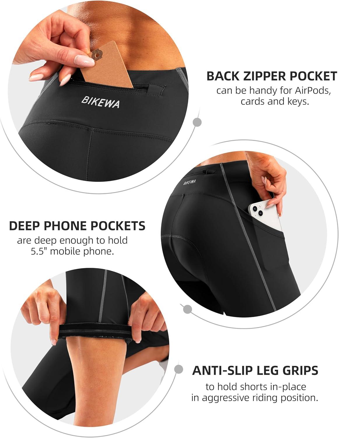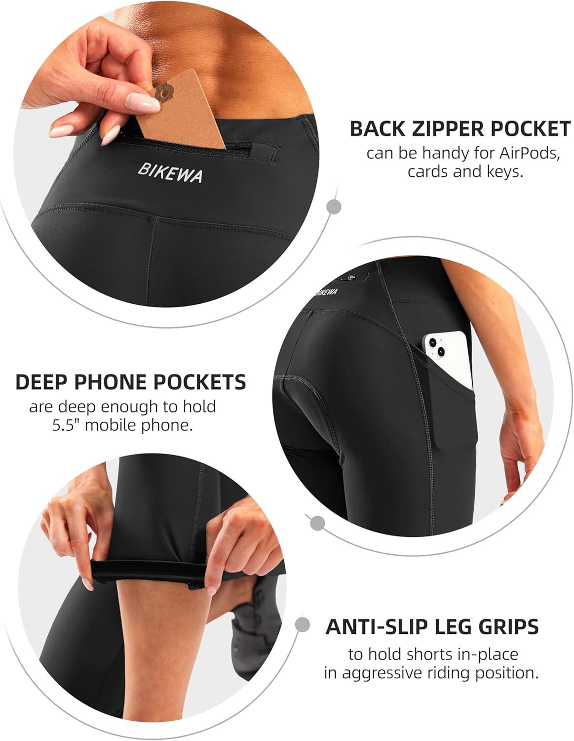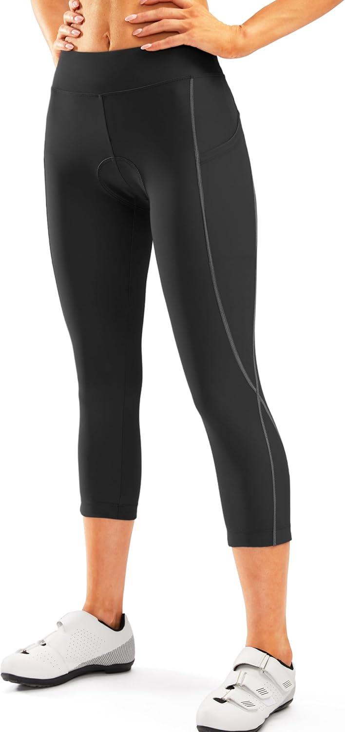 • Women’s 4D Padded Bike Pants High Waist Cycling Shorts Bicycle Capris 3/4 Biking Tights with Zipper Pockets(Black)