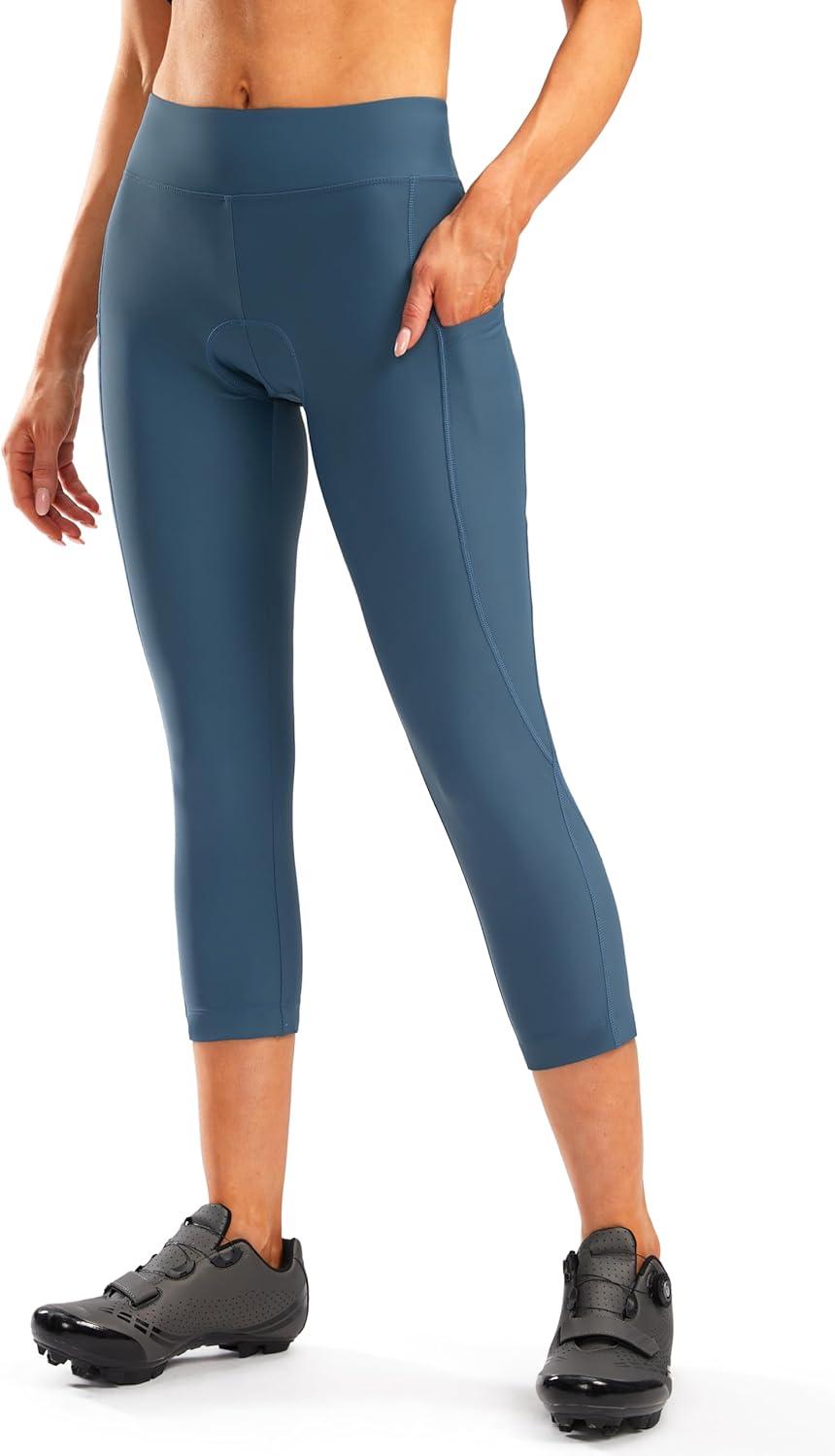 Women’s 4D Padded Bike Pants High Waist Cycling Shorts Bicycle Capris 3/4 Biking Tights with Zipper Pockets(Blue Grey)