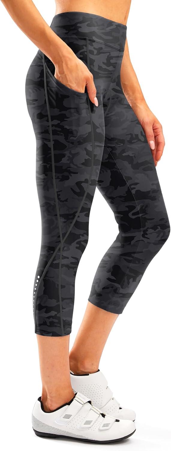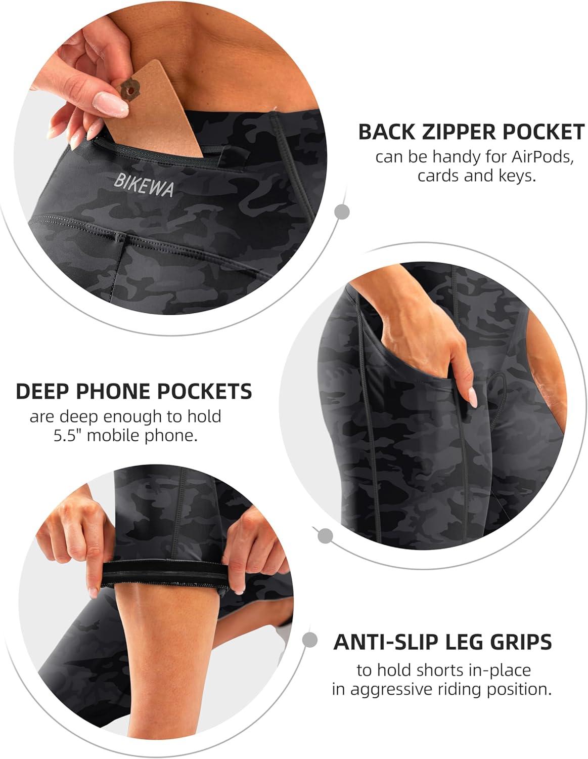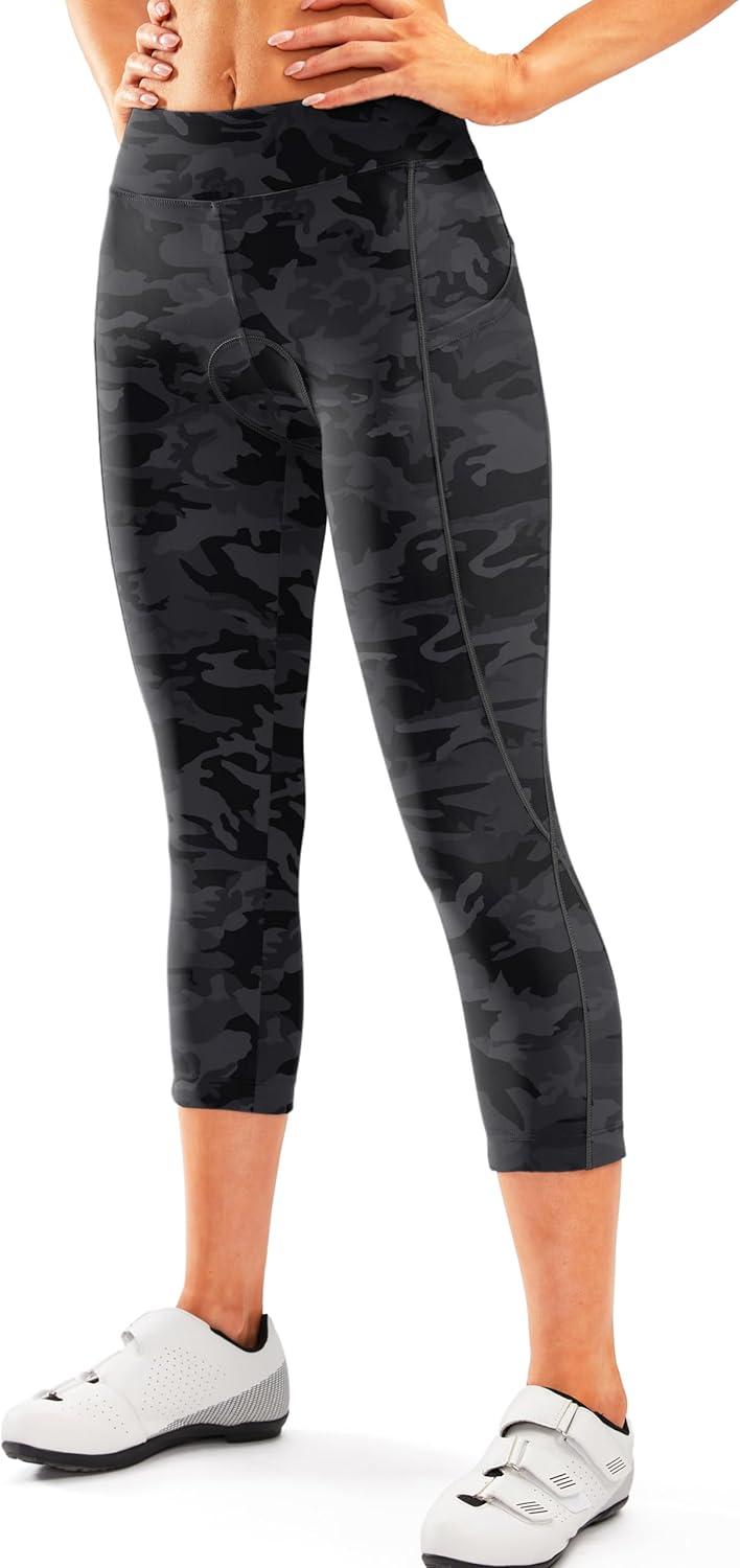 • Women’s 4D Padded Bike Pants High Waist Cycling Shorts Bicycle Capris 3/4 Biking Tights with Zipper Pockets(Camoblack)