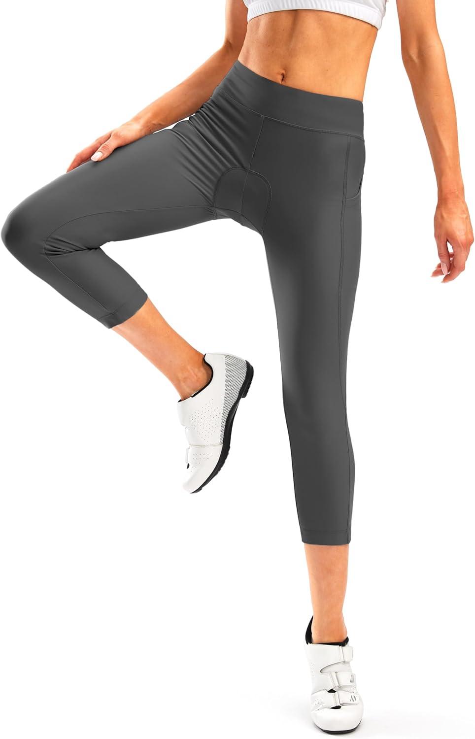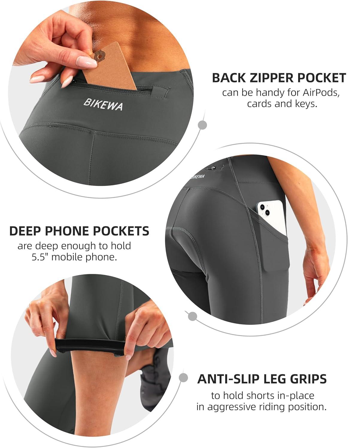 • Women’s 4D Padded Bike Pants High Waist Cycling Shorts Bicycle Capris 3/4 Biking Tights with Zipper Pockets(Dark Grey)