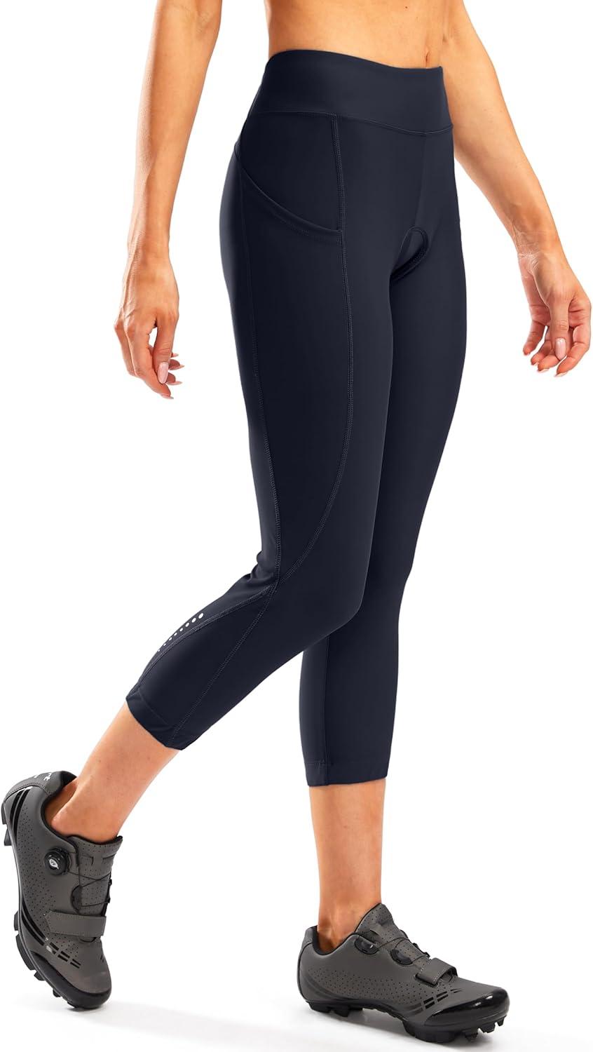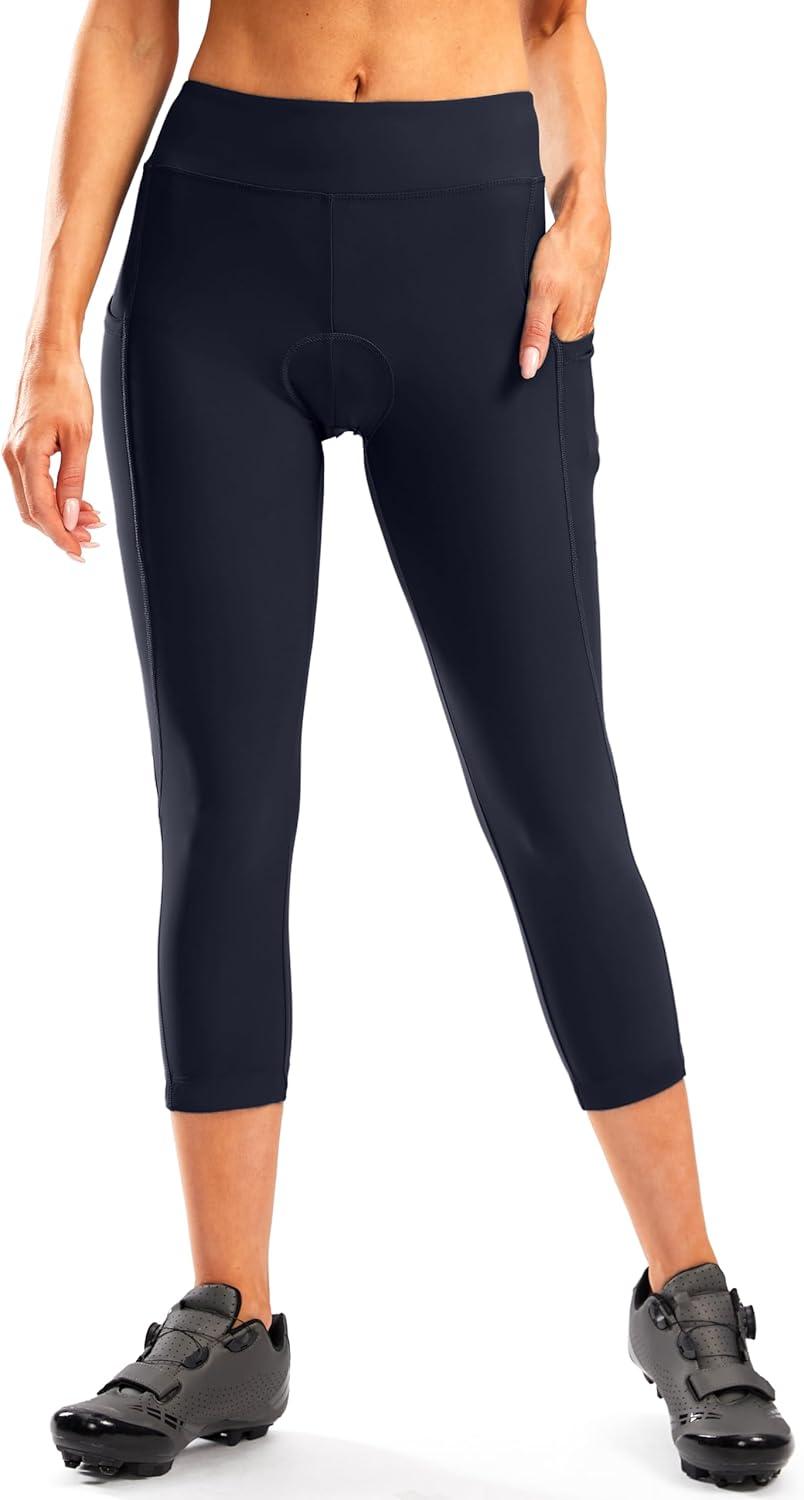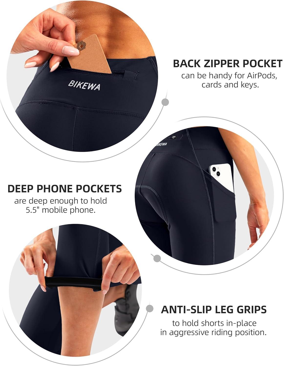 • Women’s 4D Padded Bike Pants High Waist Cycling Shorts Bicycle Capris 3/4 Biking Tights with Zipper Pockets(Navy)