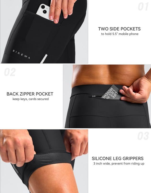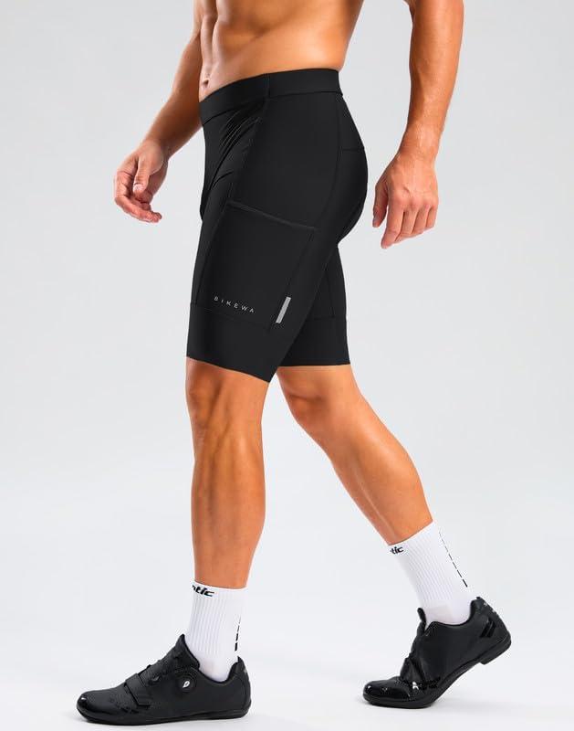 Bikewa Men’s Bike Shorts 4D Padded Cycling Shorts for Men Road Riding Biking Bicycle Zipper Pockets(Black)