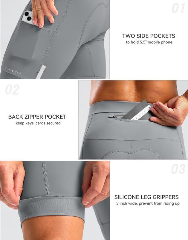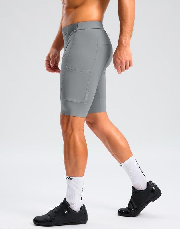Bikewa Men’s Bike Shorts 4D Padded Cycling Shorts for Men Road Riding Biking Bicycle Zipper Pockets(Light Grey)