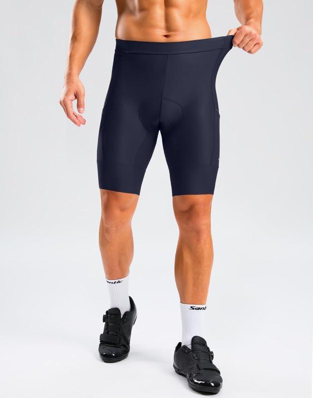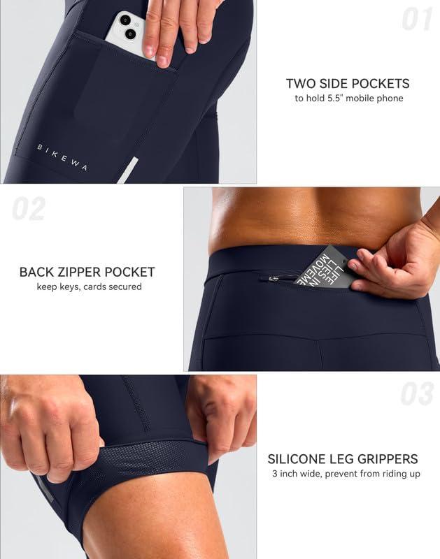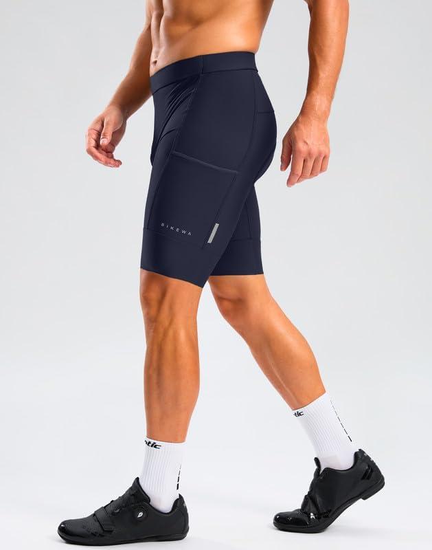 Bikewa Men’s Bike Shorts 4D Padded Cycling Shorts for Men Road Riding Biking Bicycle Zipper Pockets(Navy)
