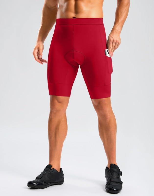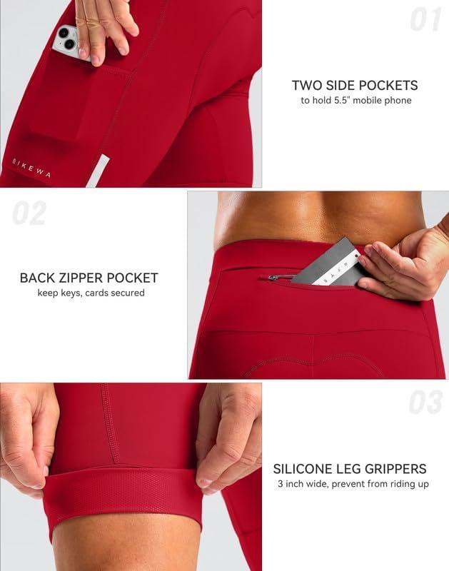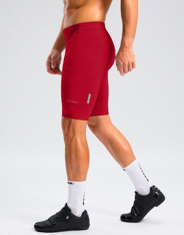 Bikewa Men’s Bike Shorts 4D Padded Cycling Shorts for Men Road Riding Biking Bicycle Zipper Pockets(Red)