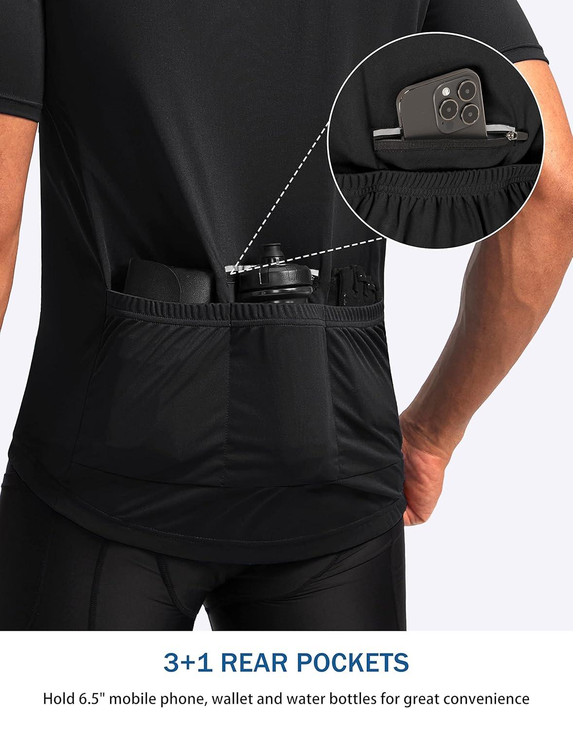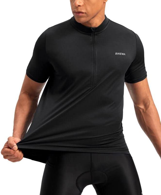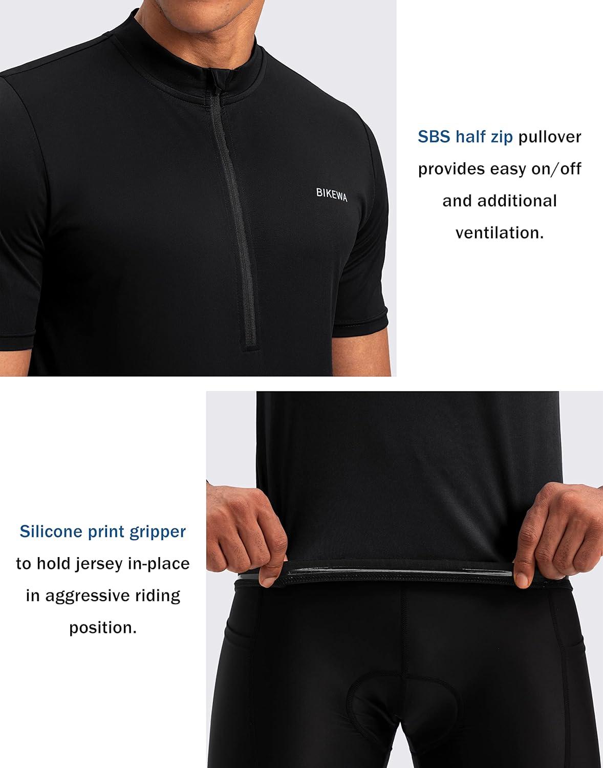 Bikewa Men’s Cycling Jersey Moisture Wicking Short Sleeve UPF Half Zip Bike Road Riding Biking Shirts for Men Zipper Pockets(Black)