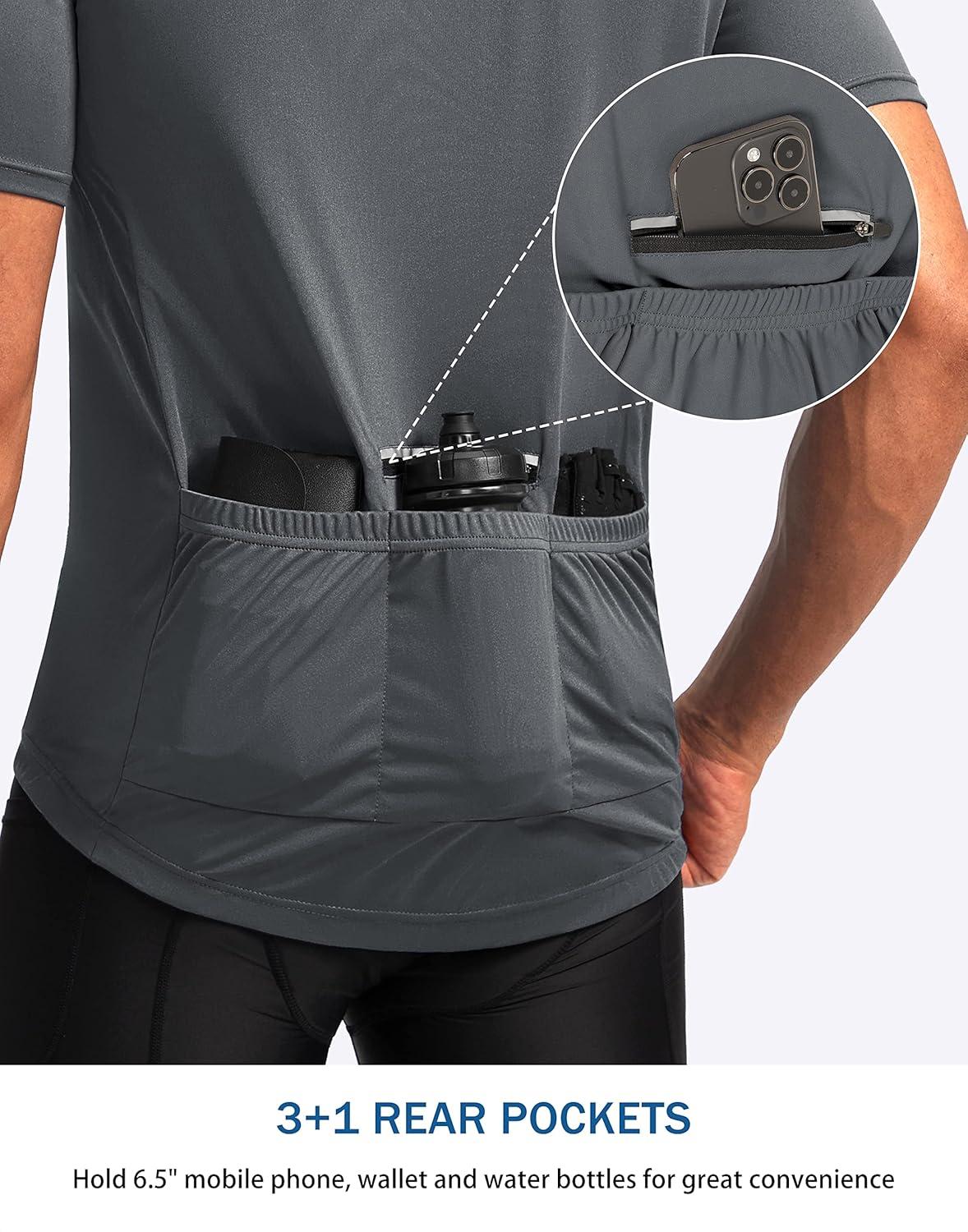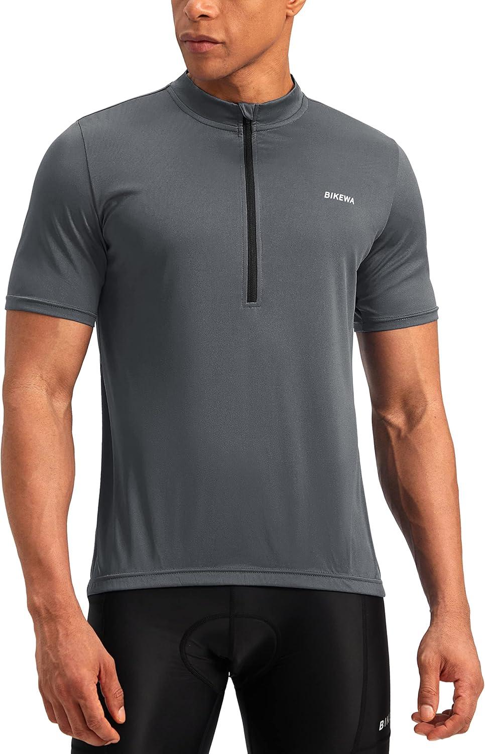 Bikewa Men’s Cycling Jersey Moisture Wicking Short Sleeve UPF Half Zip Bike Road Riding Biking Shirts for Men Zipper Pockets(Dark Grey)