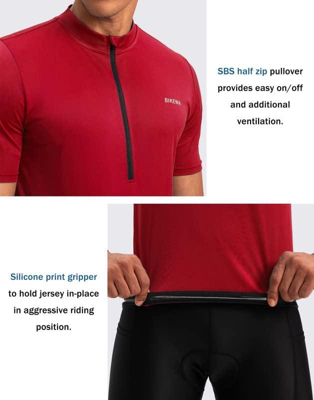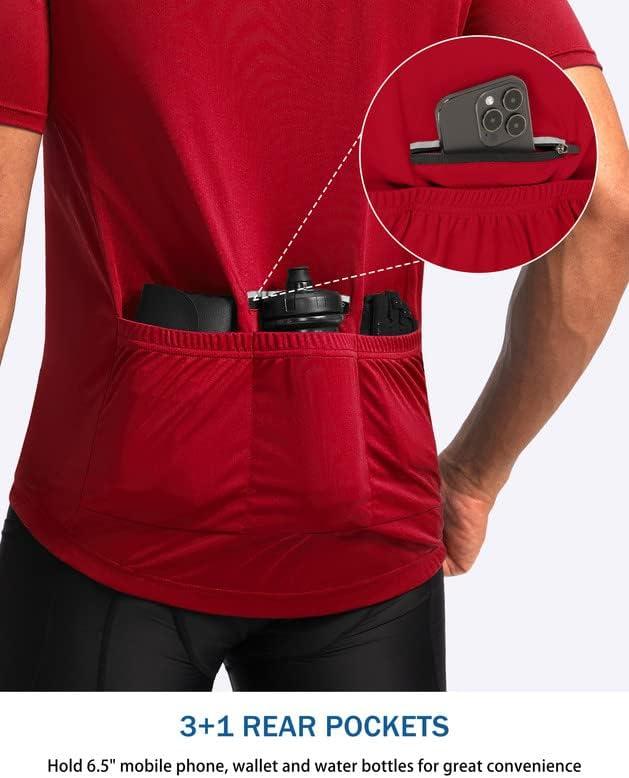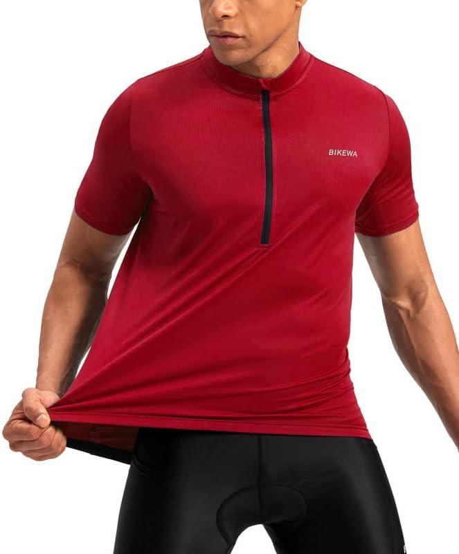 Bikewa Men’s Cycling Jersey Moisture Wicking Short Sleeve UPF Half Zip Bike Road Riding Biking Shirts for Men Zipper Pockets(Dark Red)