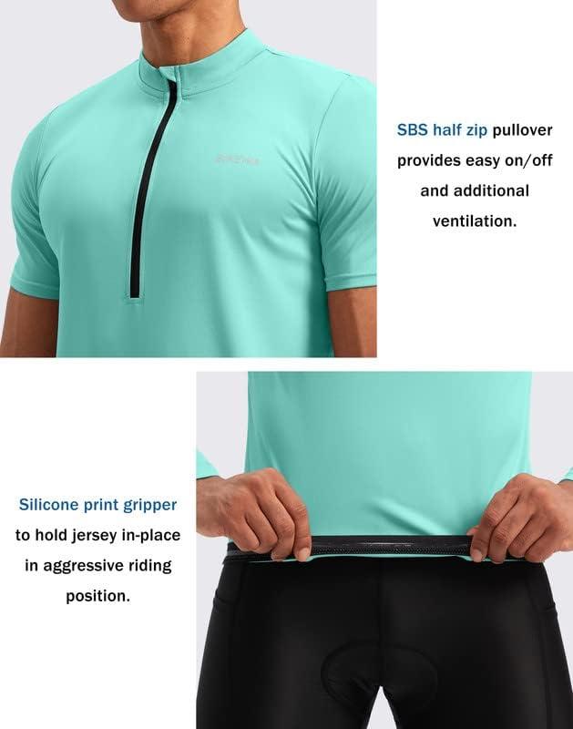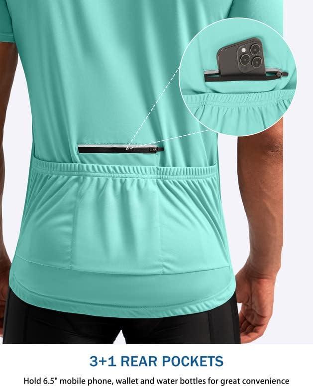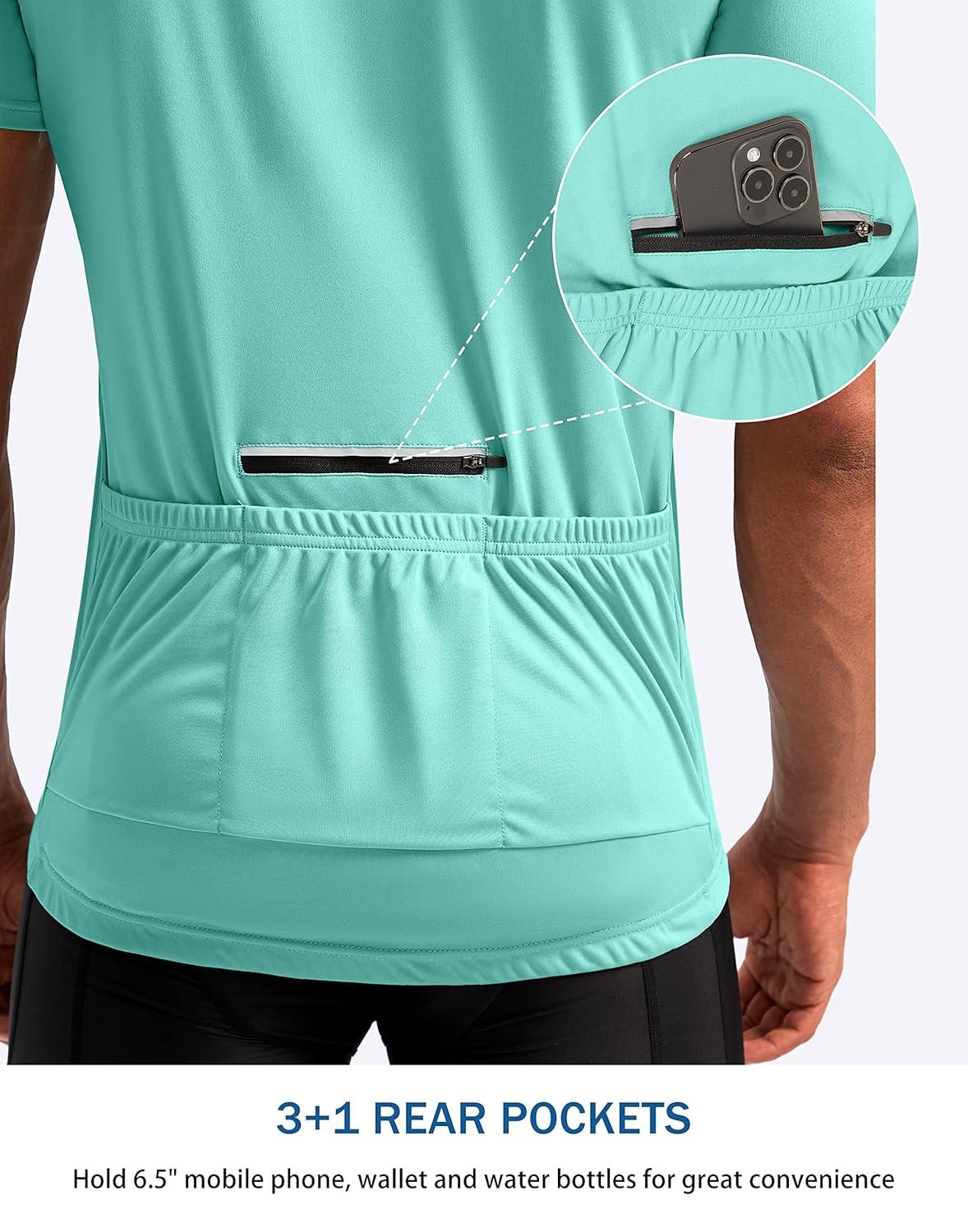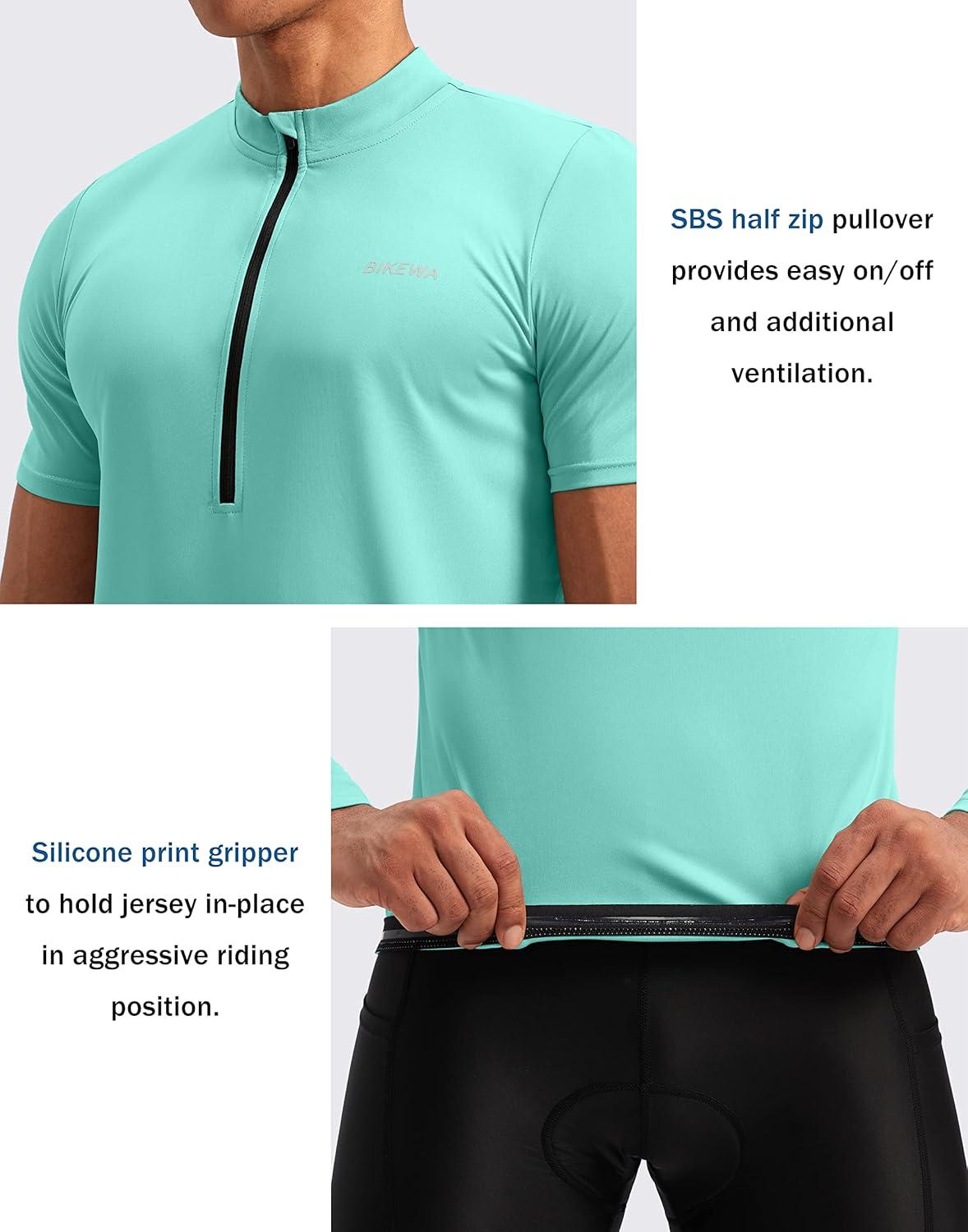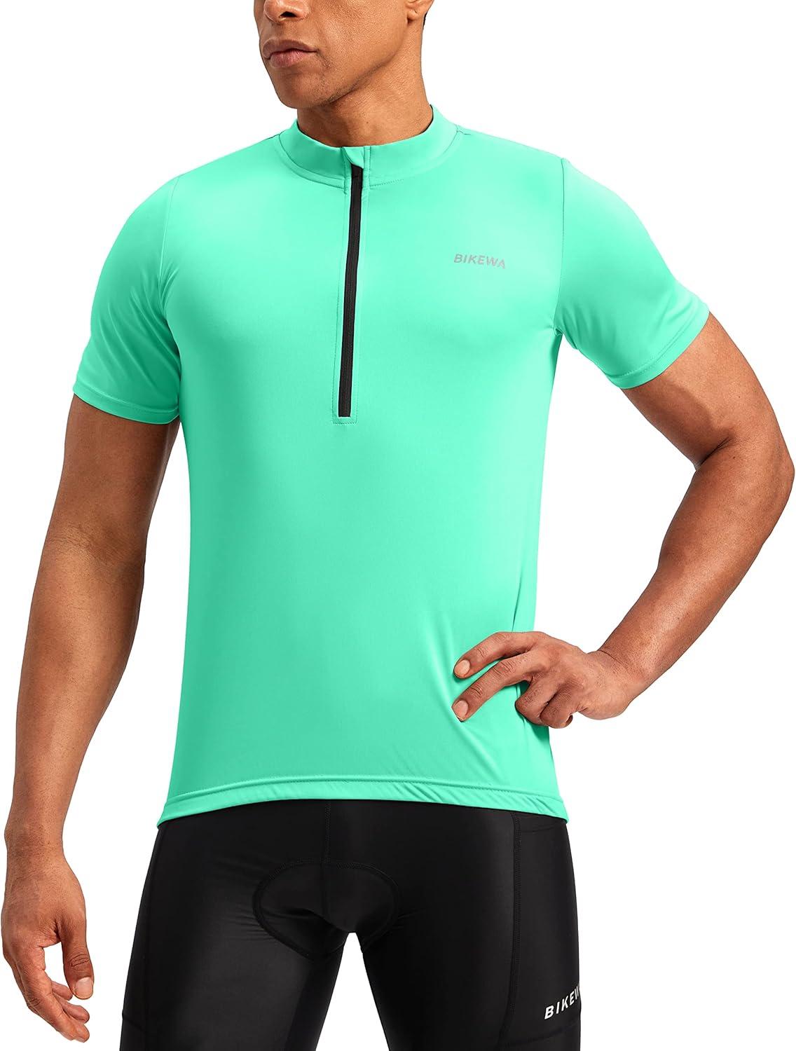 Bikewa Men’s Cycling Jersey Moisture Wicking Short Sleeve UPF Half Zip Bike Road Riding Biking Shirts for Men Zipper Pockets(Mint Green)