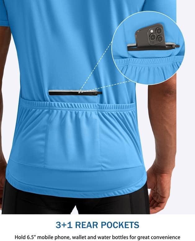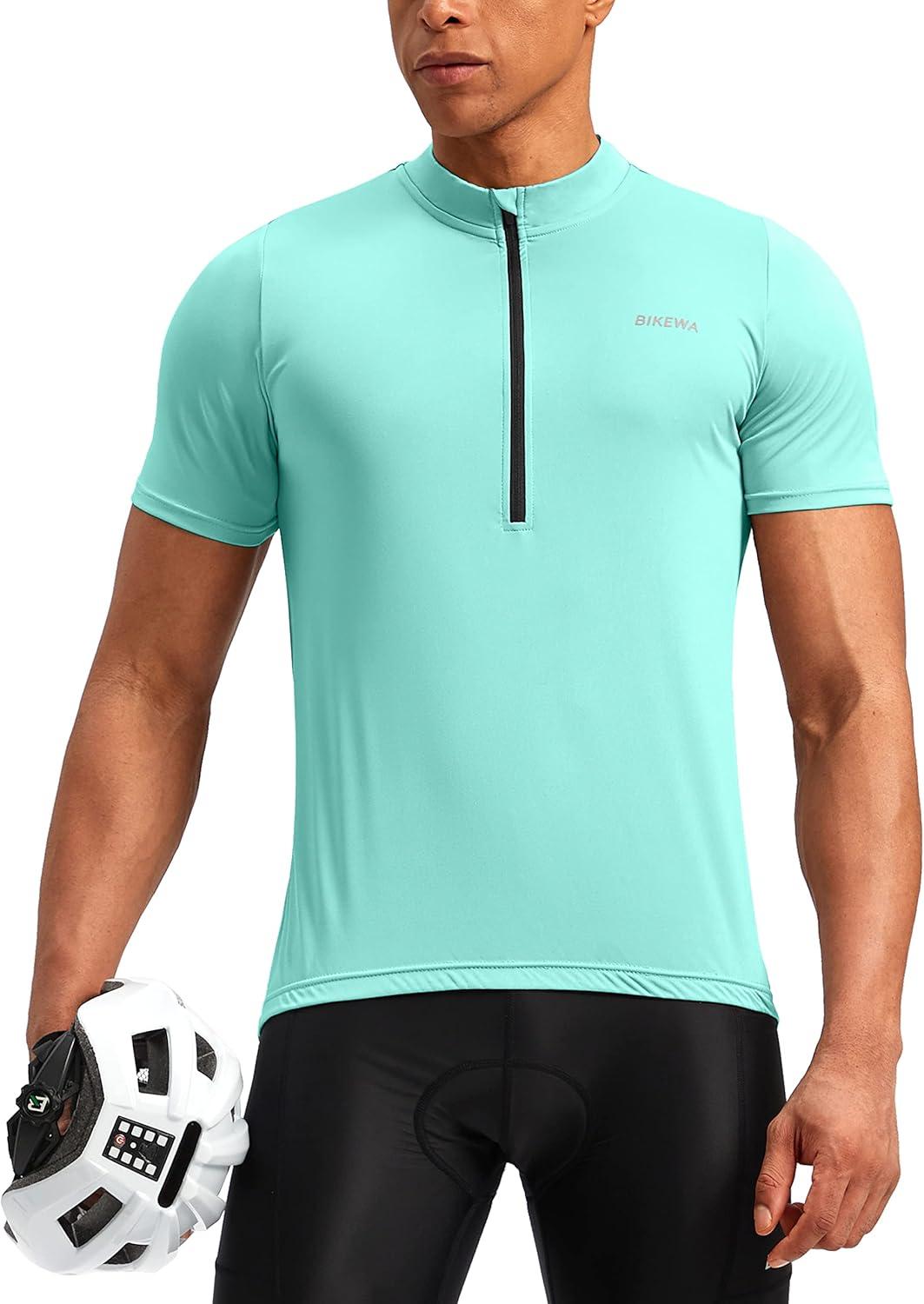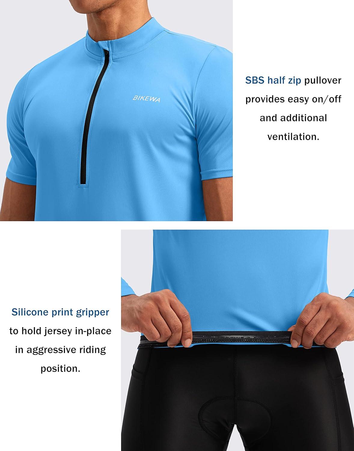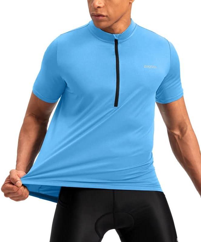 Bikewa Men’s Cycling Jersey Moisture Wicking Short Sleeve UPF Half Zip Bike Road Riding Biking Shirts for Men Zipper Pockets(Sky Blue)