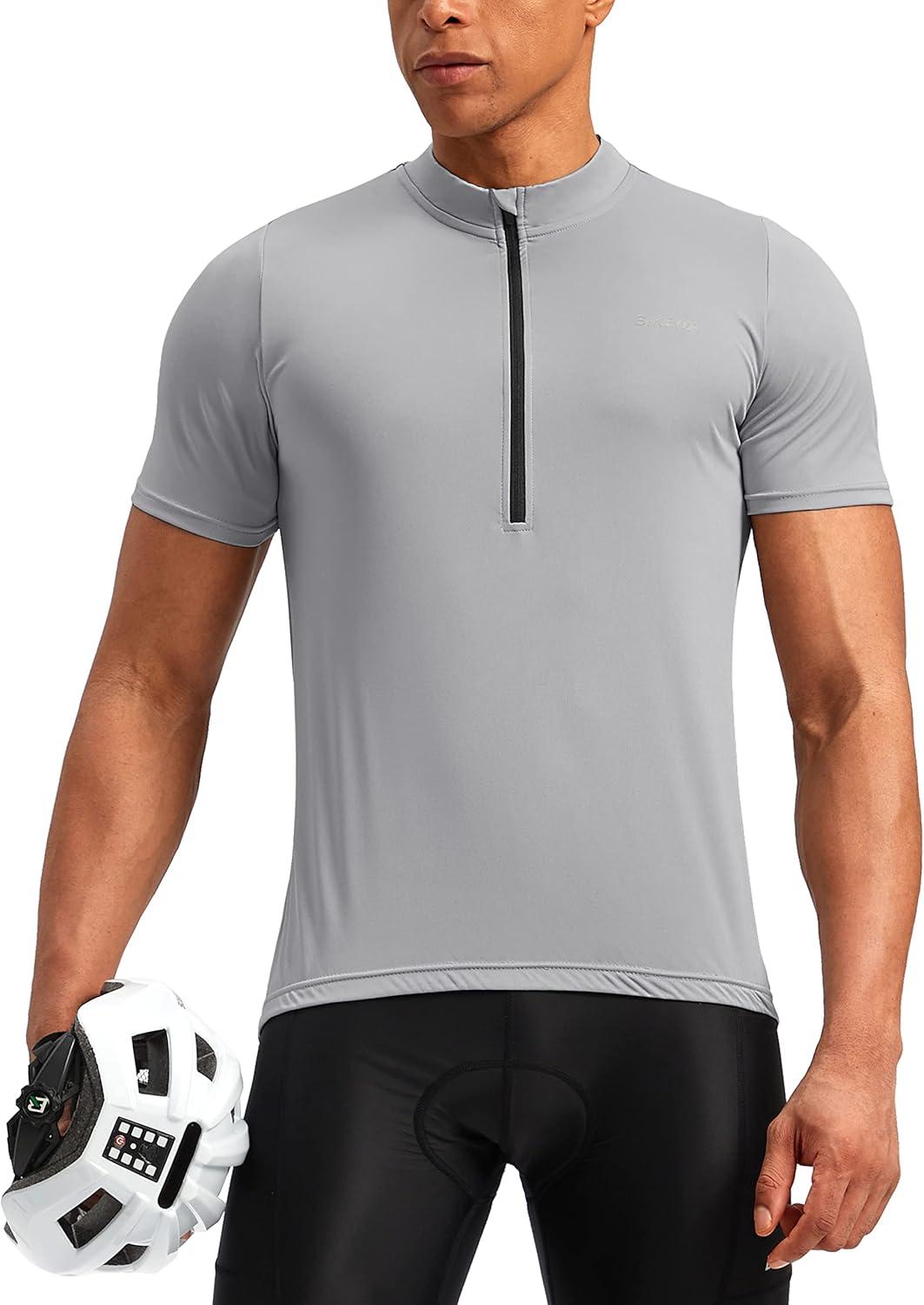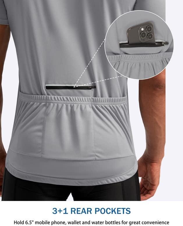 Bikewa Men’s Cycling Jersey Moisture Wicking Short Sleeve UPF Half Zip Bike Road Riding Biking Shirts for Men Zipper Pockets(Light Grey)