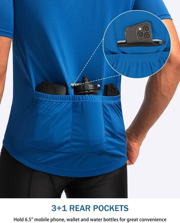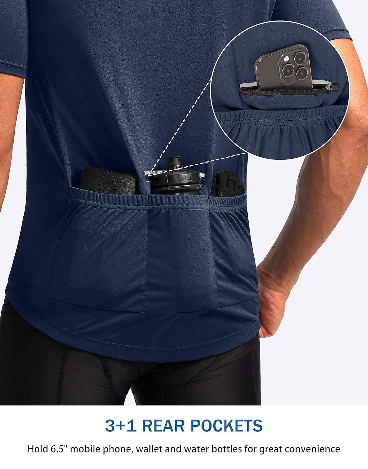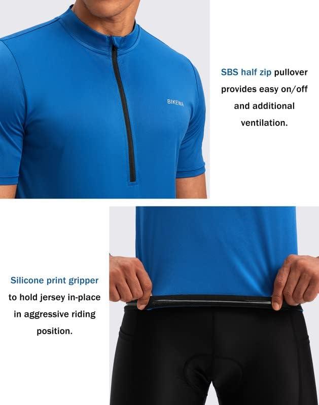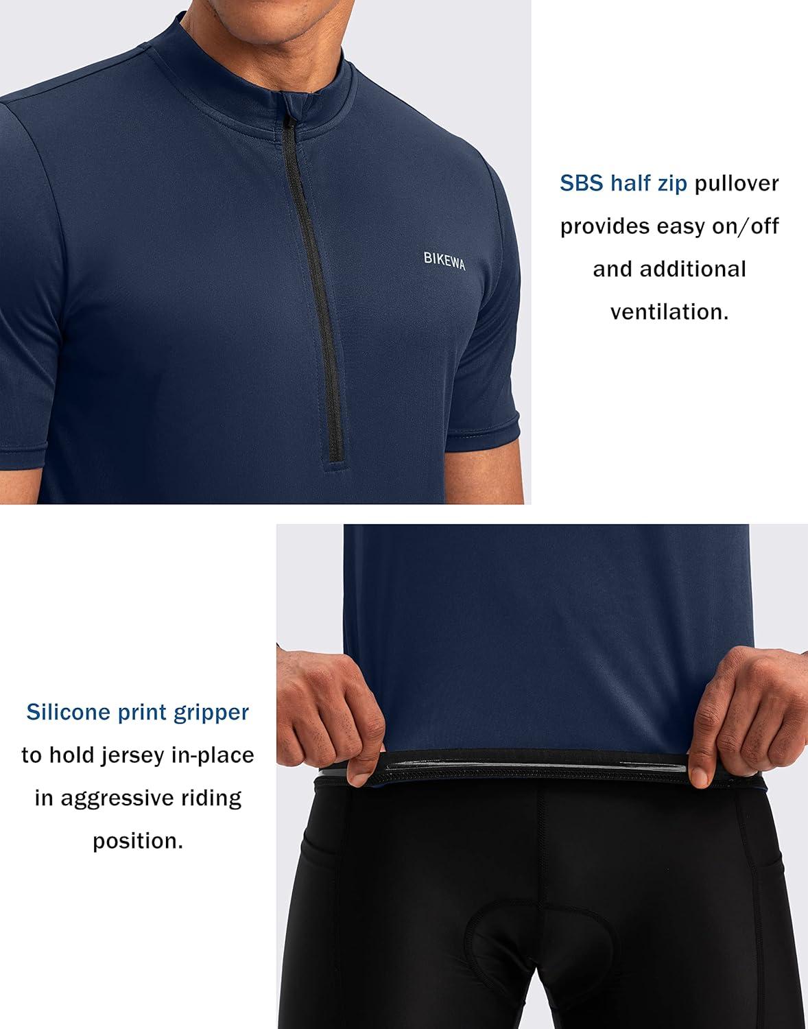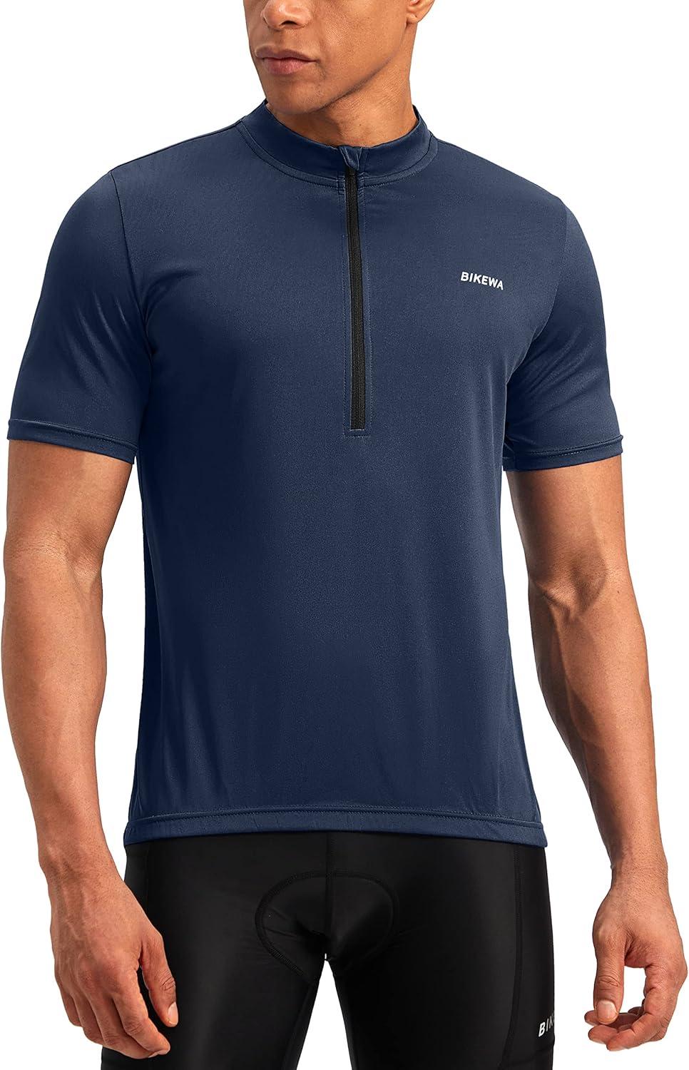 Bikewa Men’s Cycling Jersey Moisture Wicking Short Sleeve UPF Half Zip Bike Road Riding Biking Shirts for Men Zipper Pockets(Navy)