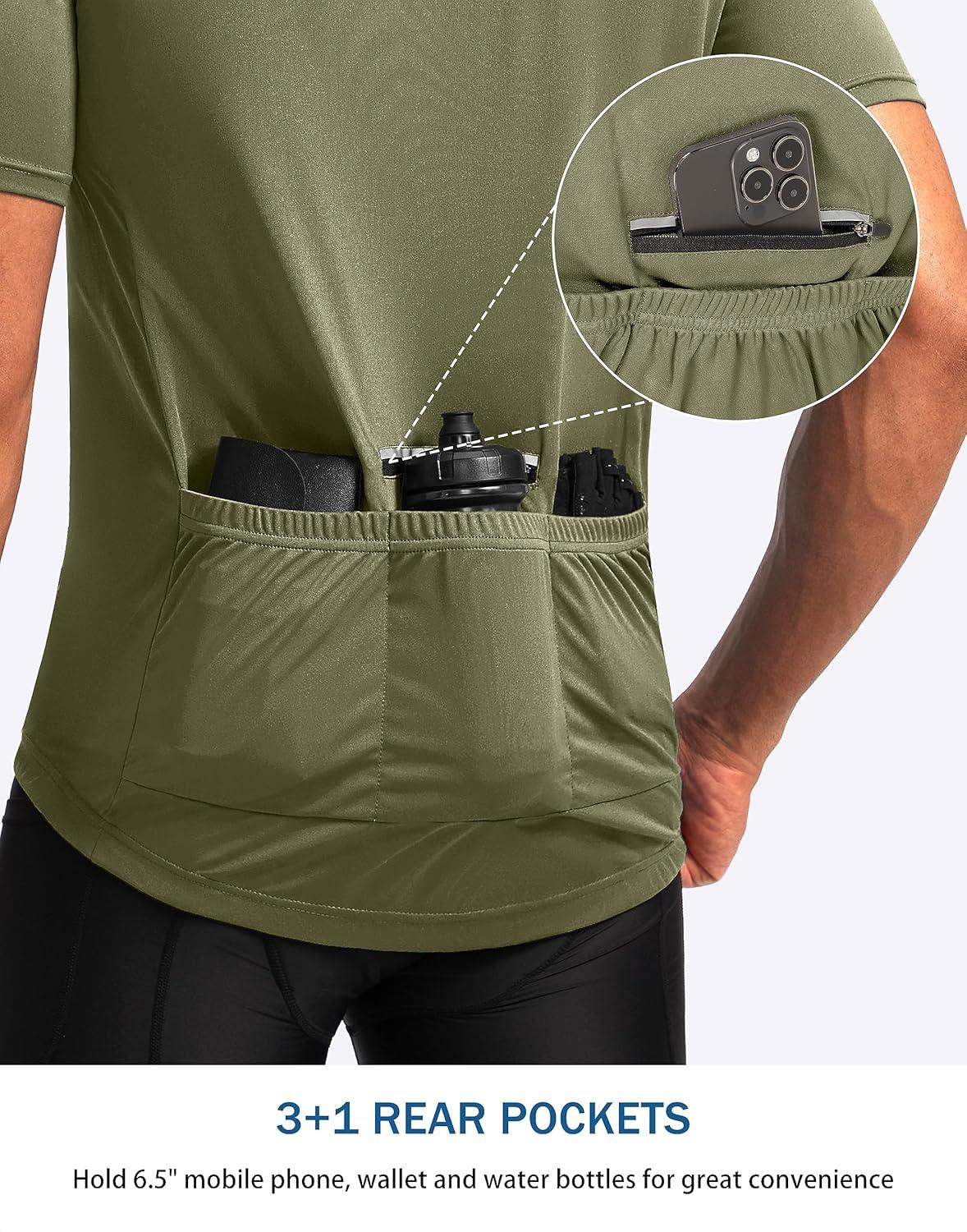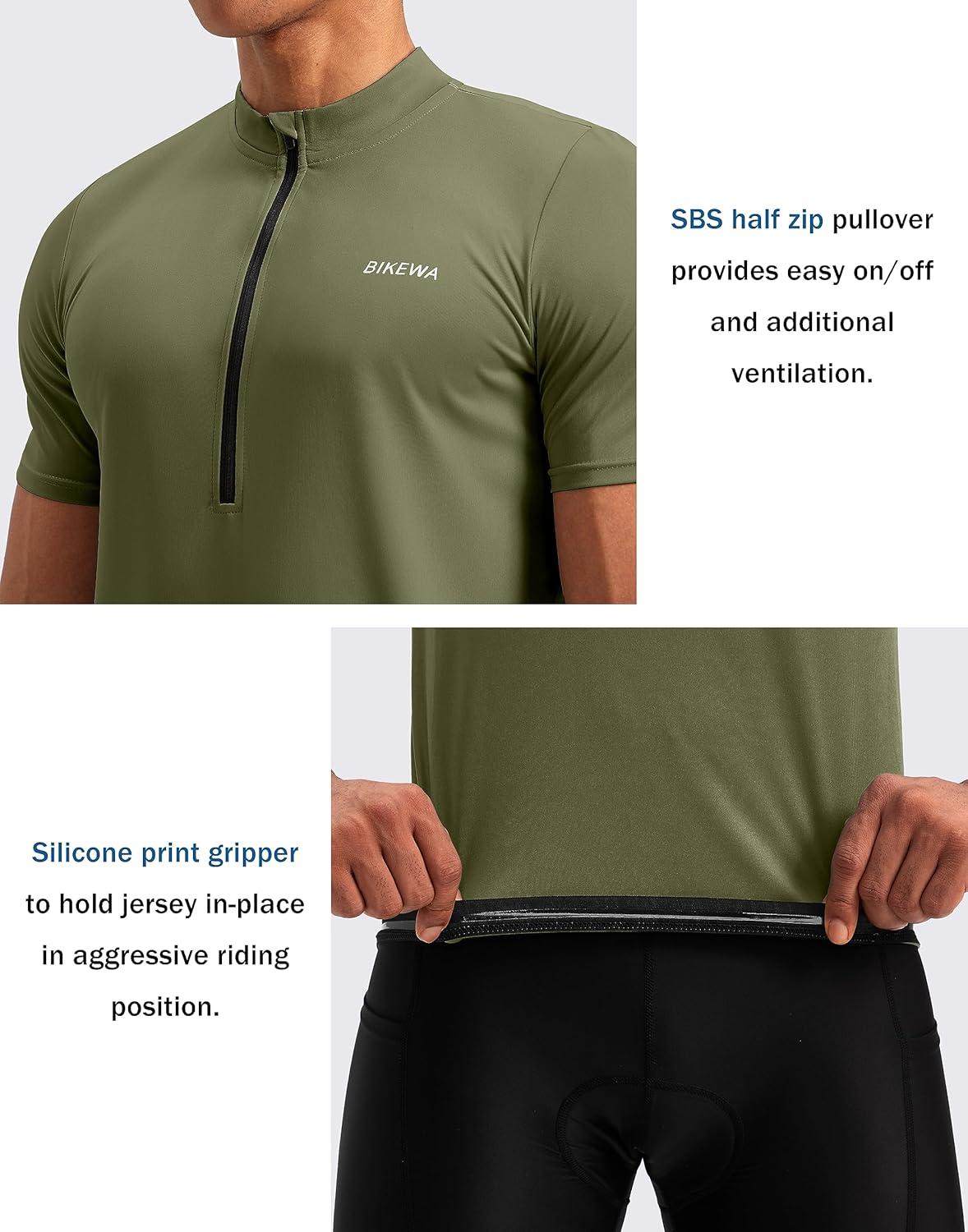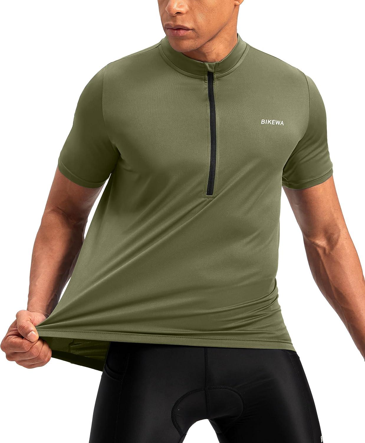 Bikewa Men’s Cycling Jersey Moisture Wicking Short Sleeve UPF Half Zip Bike Road Riding Biking Shirts for Men Zipper Pockets(Olive)