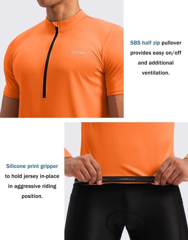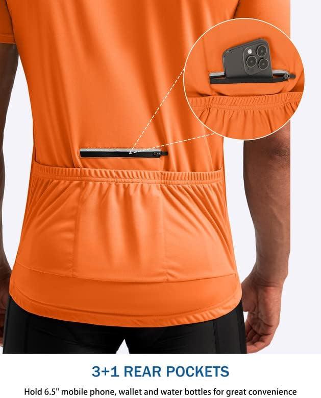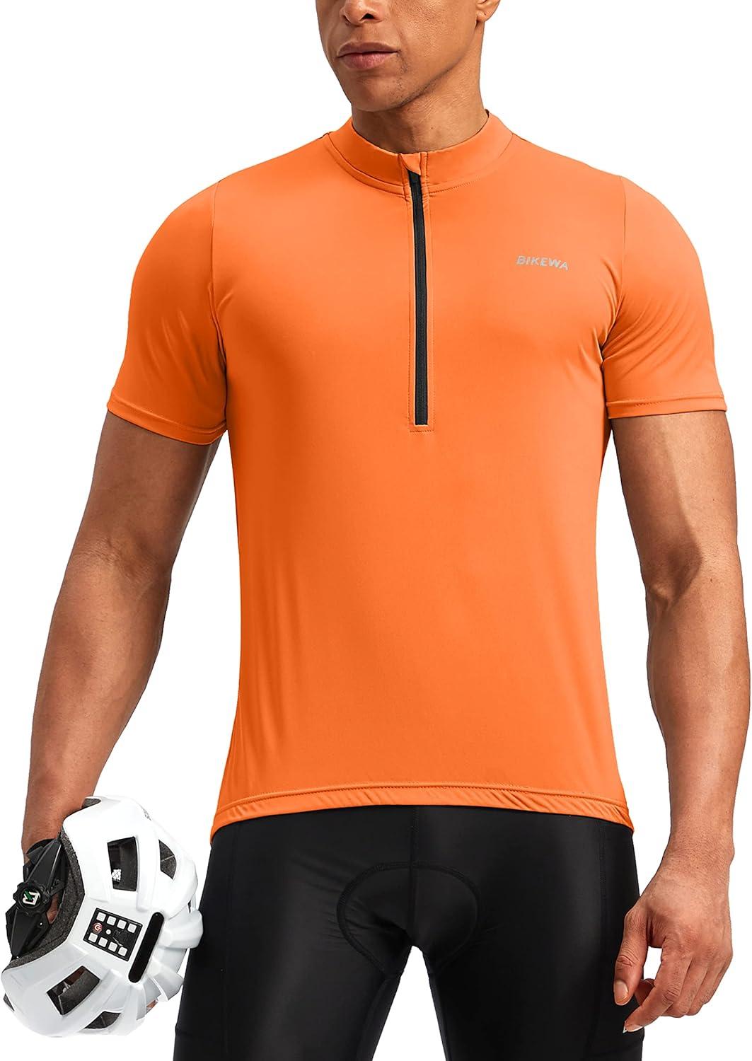 Bikewa Men’s Cycling Jersey Moisture Wicking Short Sleeve UPF Half Zip Bike Road Riding Biking Shirts for Men Zipper Pockets(Orange)