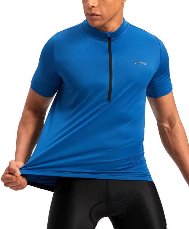 Bikewa Men’s Cycling Jersey Moisture Wicking Short Sleeve UPF Half Zip Bike Road Riding Biking Shirts for Men Zipper Pockets(Royal Blue)