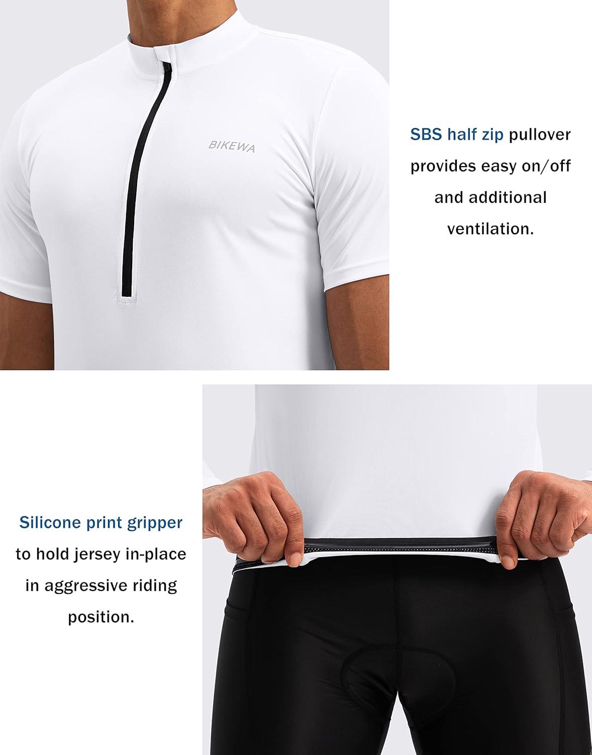 Bikewa Men’s Cycling Jersey Moisture Wicking Short Sleeve UPF Half Zip Bike Road Riding Biking Shirts for Men Zipper Pockets(White)