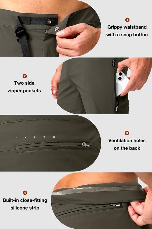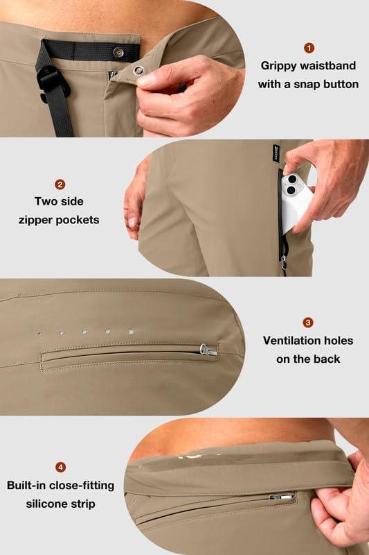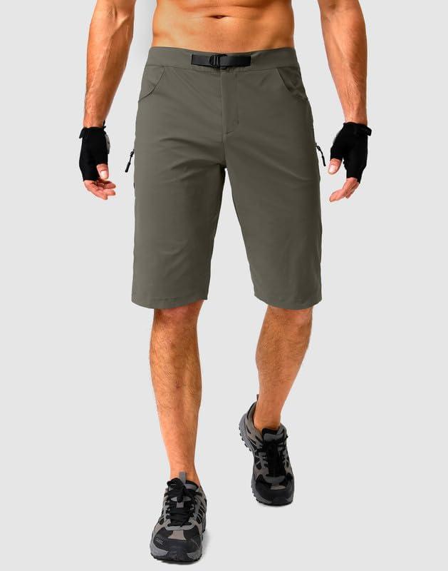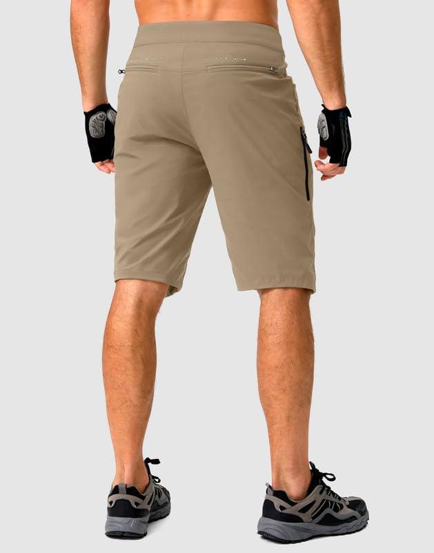Men’s Mountain Bike Shorts Stretch Cycling Biking Bicycle Quick Dry Hiking Shorts for Men Zipper Pockets(Khaki)
