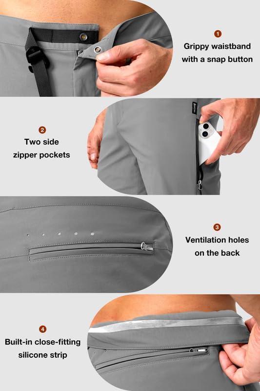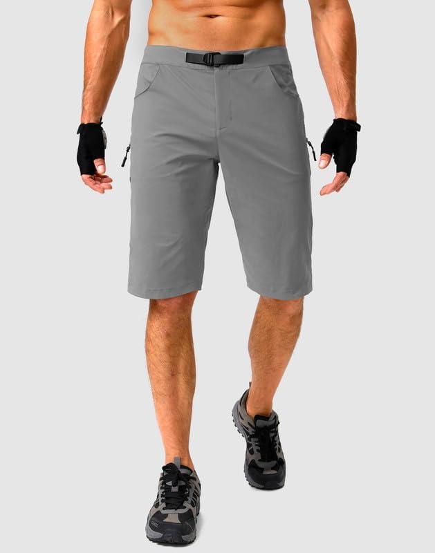 Men’s Mountain Bike Shorts Stretch Cycling Biking Bicycle Quick Dry Hiking Shorts for Men Zipper Pockets(Light Grey)