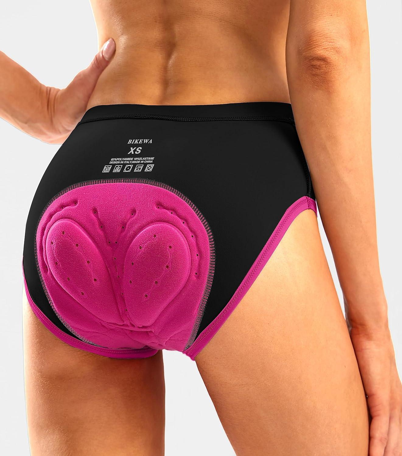 Bikewa Women’s 4D Padded Bike Underwear Cycling Bicycle Shorts Biking Riding Briefs Biker Cycle Undershorts for Women(Black/Rosy)