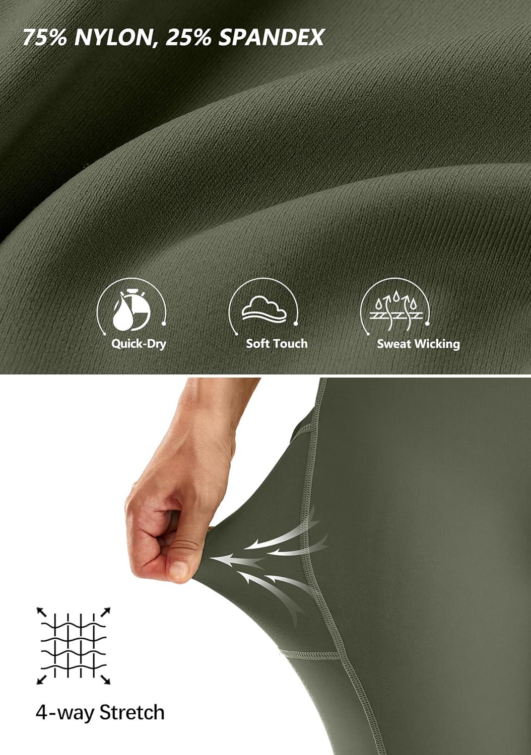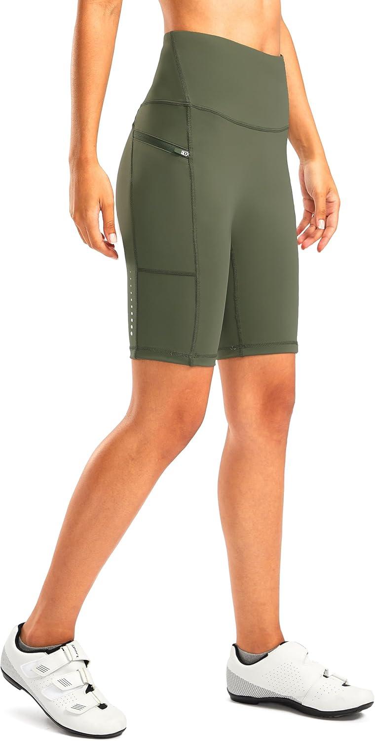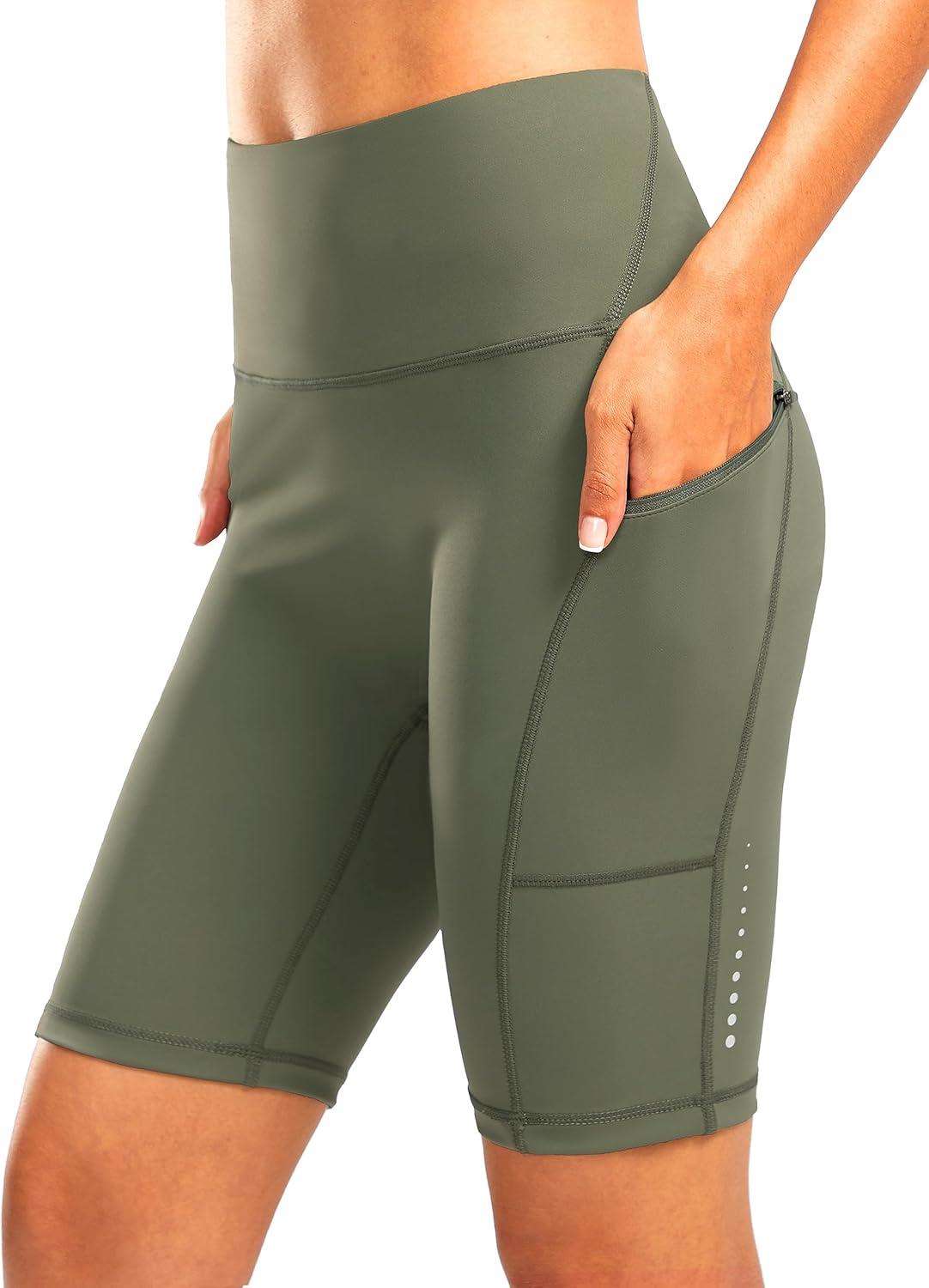 Women’s High Waisted Biker Shorts 8″ Running Workout Tummy Control Bike Spandex Shorts for Women Zipper Pockets(Army Green)