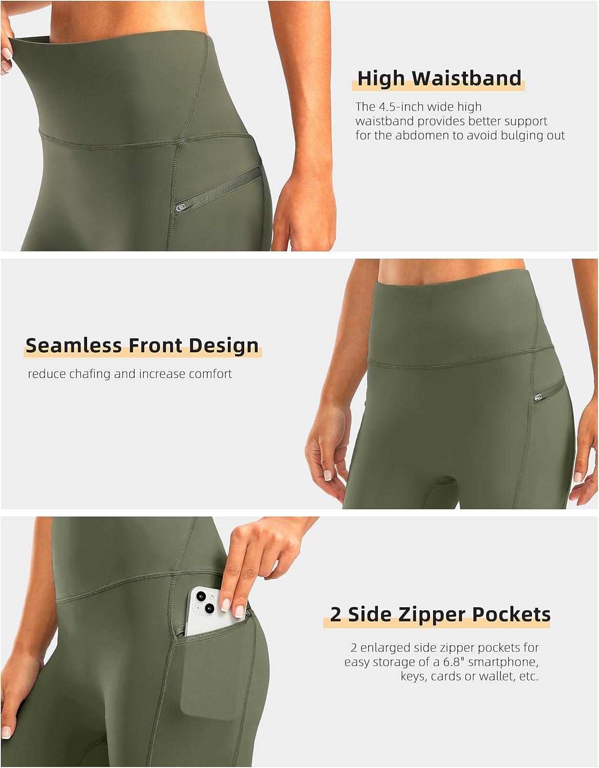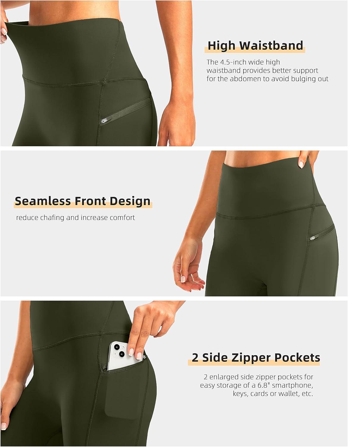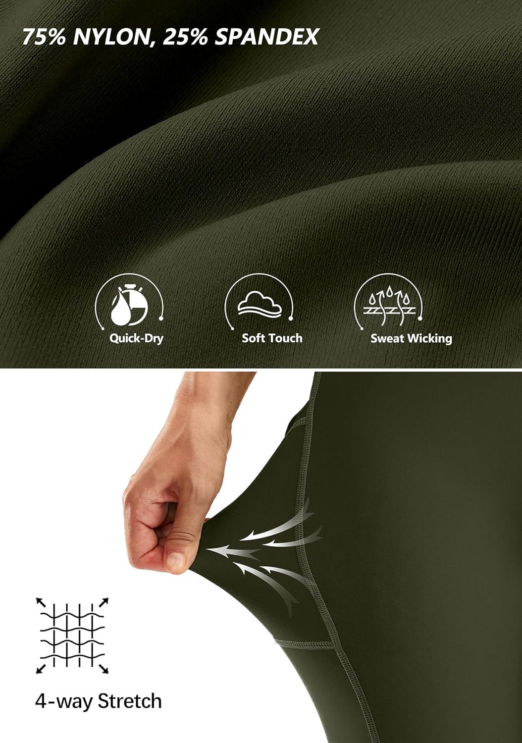 Women’s High Waisted Biker Shorts 8″ Running Workout Tummy Control Bike Spandex Shorts for Women Zipper Pockets(Army Green)