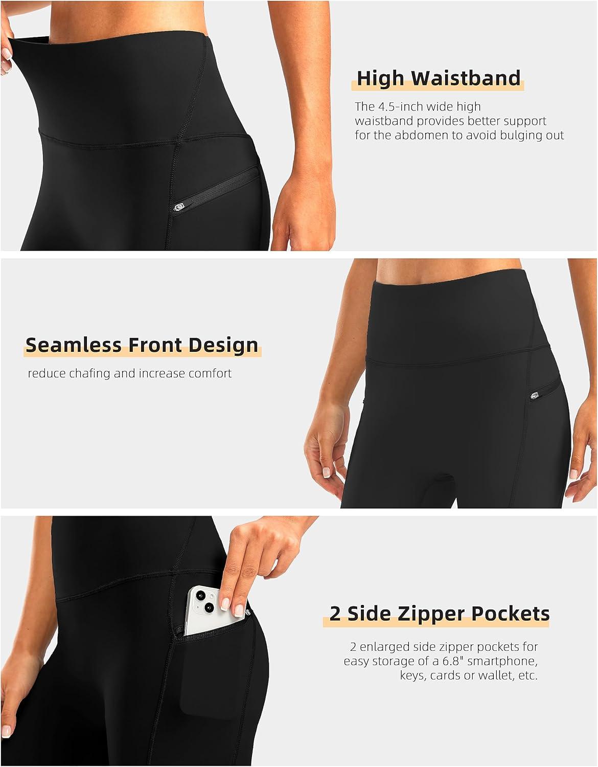 Women’s High Waisted Biker Shorts 8″ Running Workout Tummy Control Bike Spandex Shorts for Women Zipper Pockets(Black)