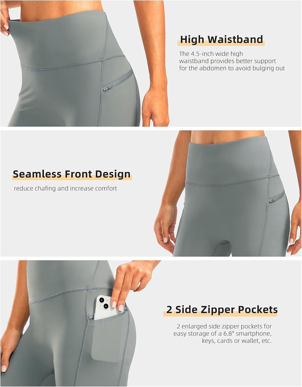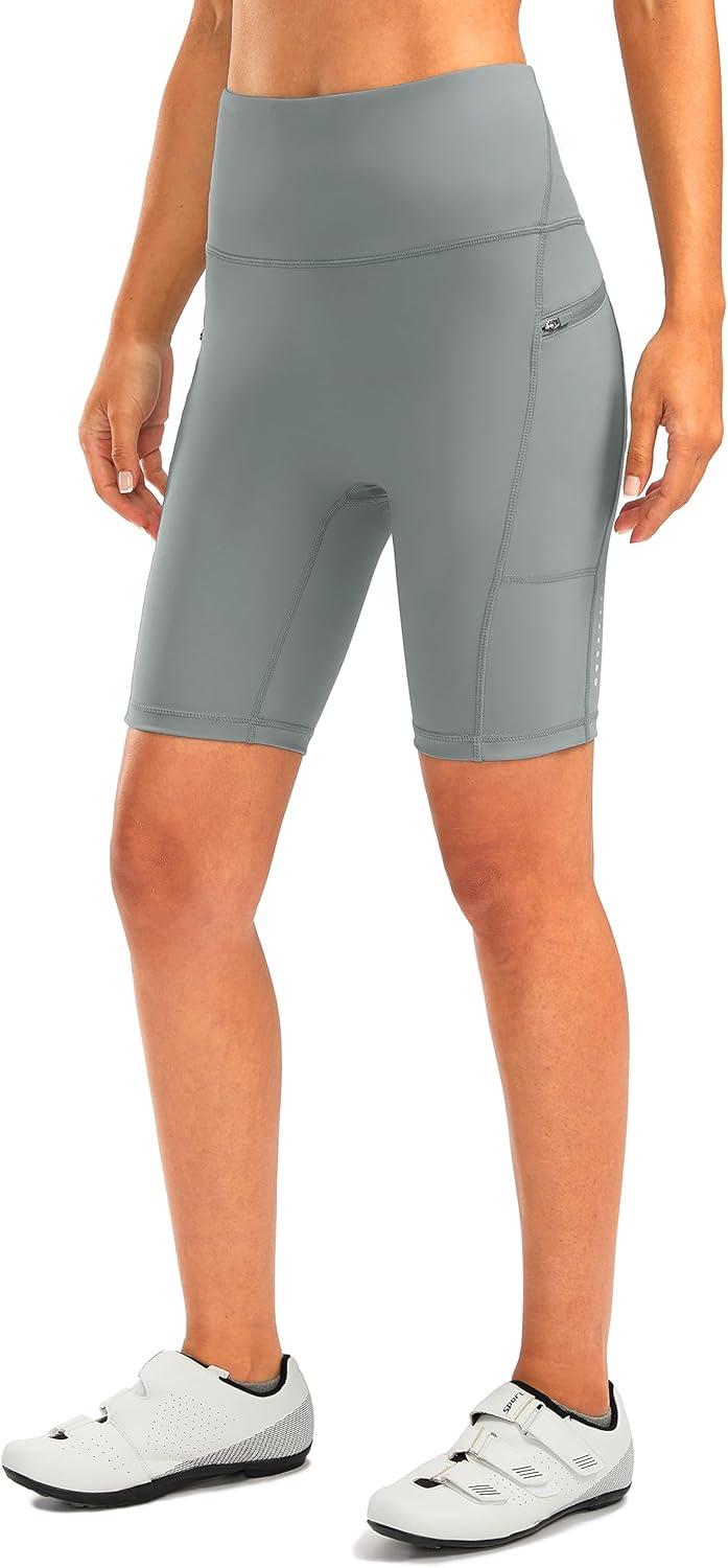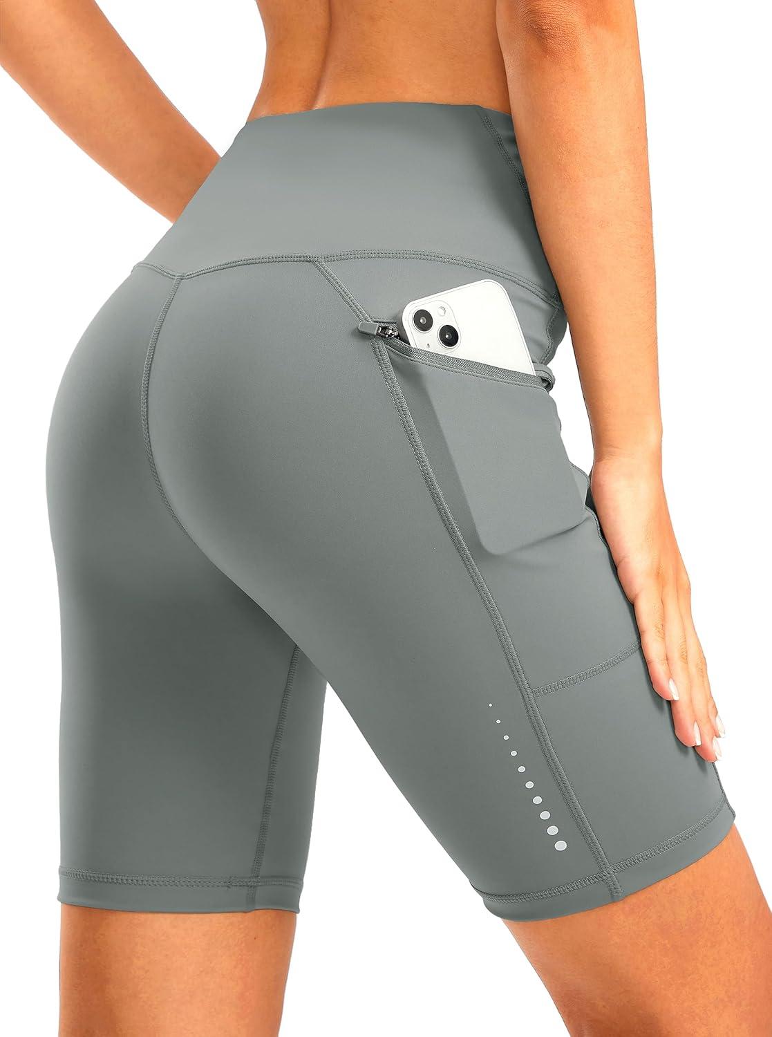 Women’s High Waisted Biker Shorts 8″ Running Workout Tummy Control Bike Spandex Shorts for Women Zipper Pockets(Grey Sage)