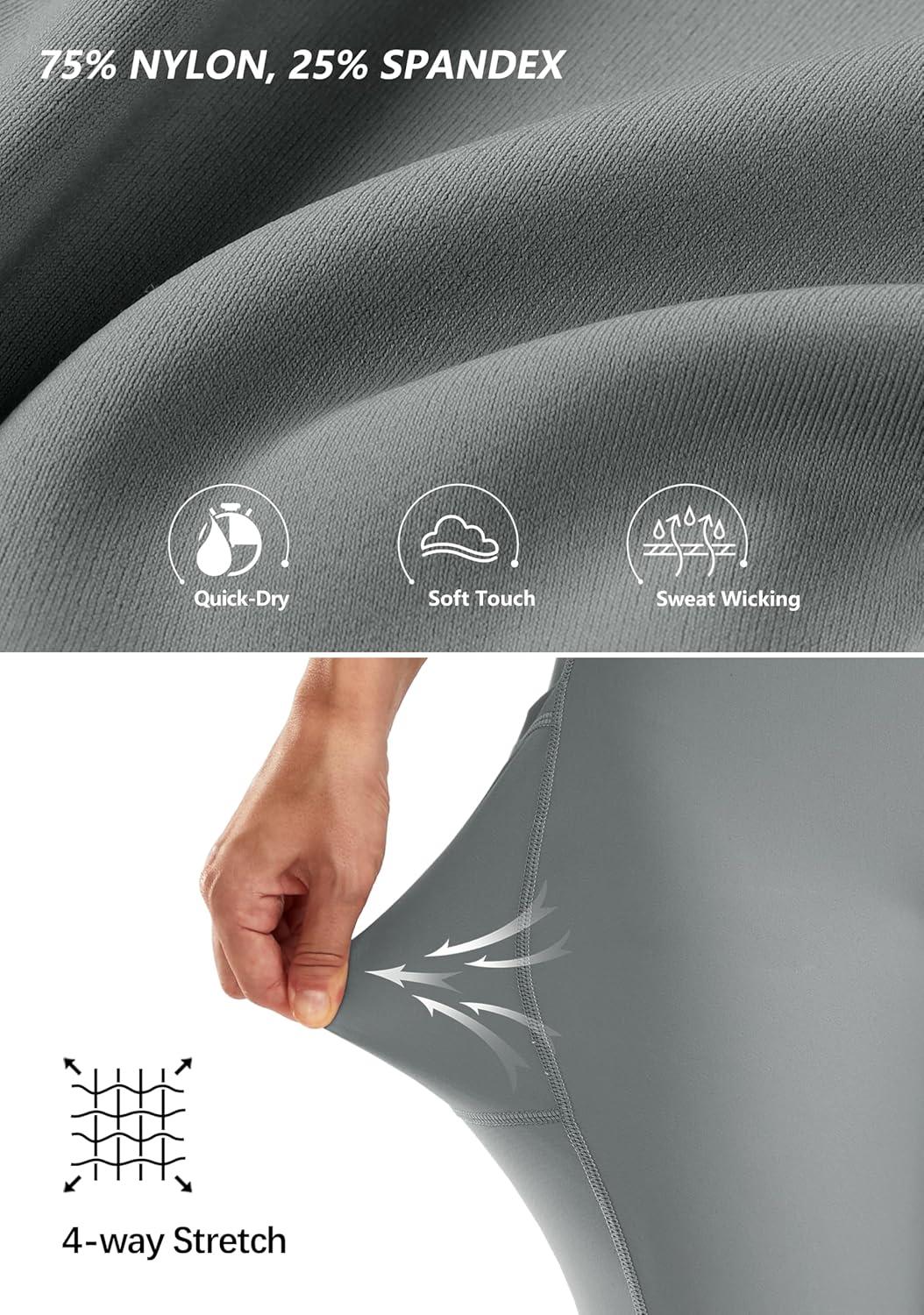 Women’s High Waisted Biker Shorts 8″ Running Workout Tummy Control Bike Spandex Shorts for Women Zipper Pockets(Bright Grey)