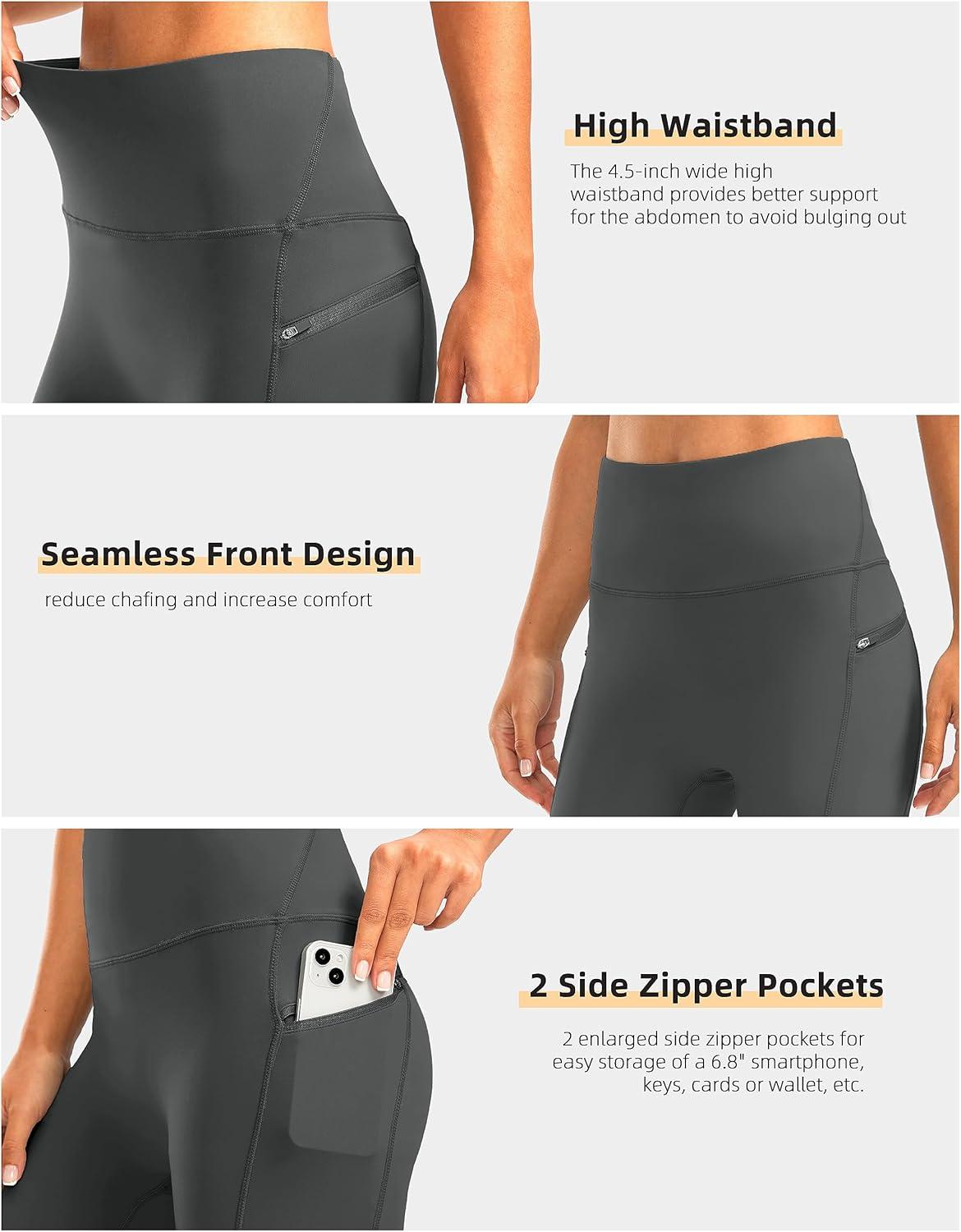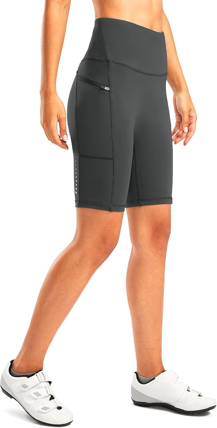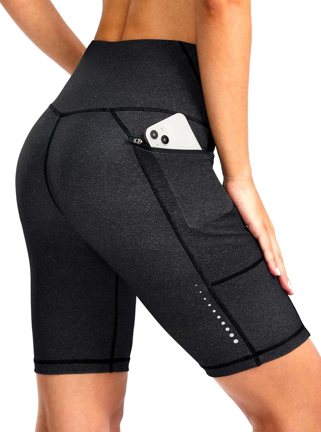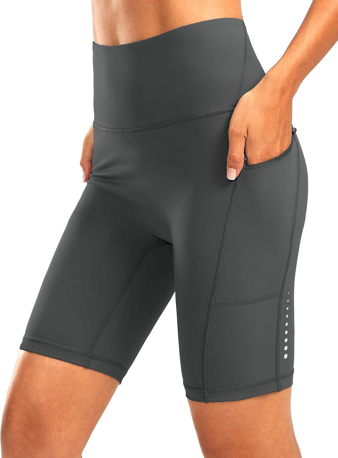 Women’s High Waisted Biker Shorts 8″ Running Workout Tummy Control Bike Spandex Shorts for Women Zipper Pockets(Charcoal)