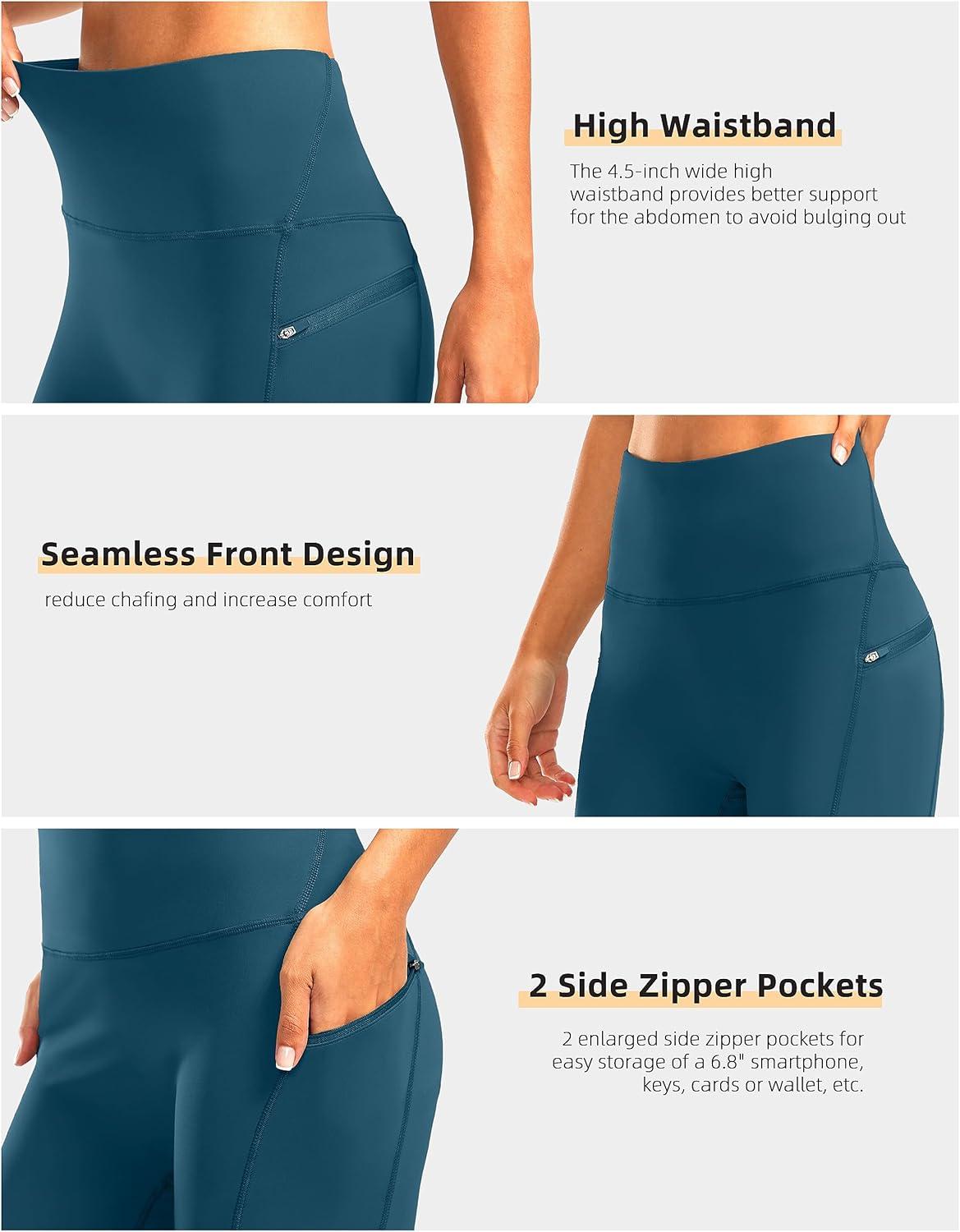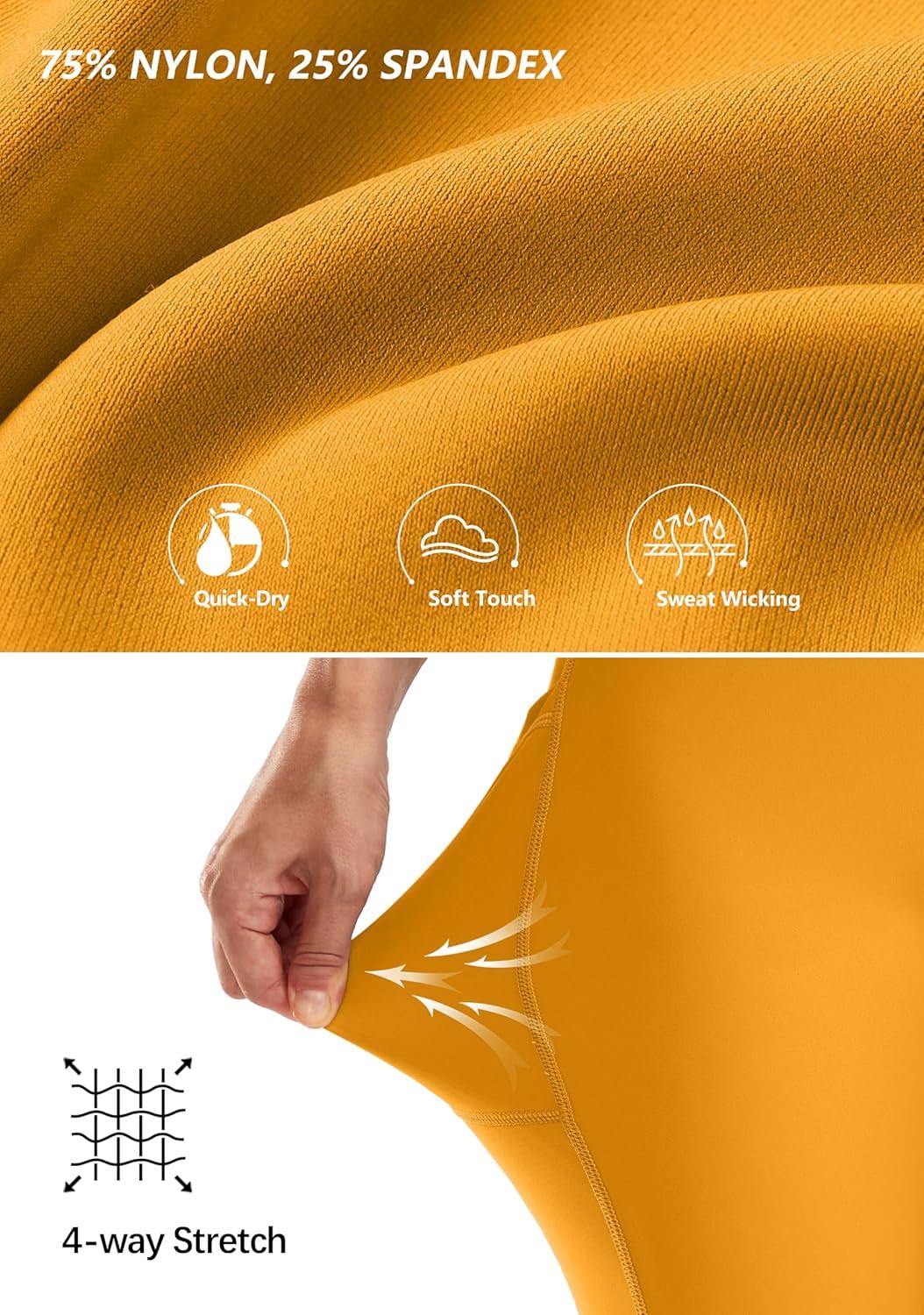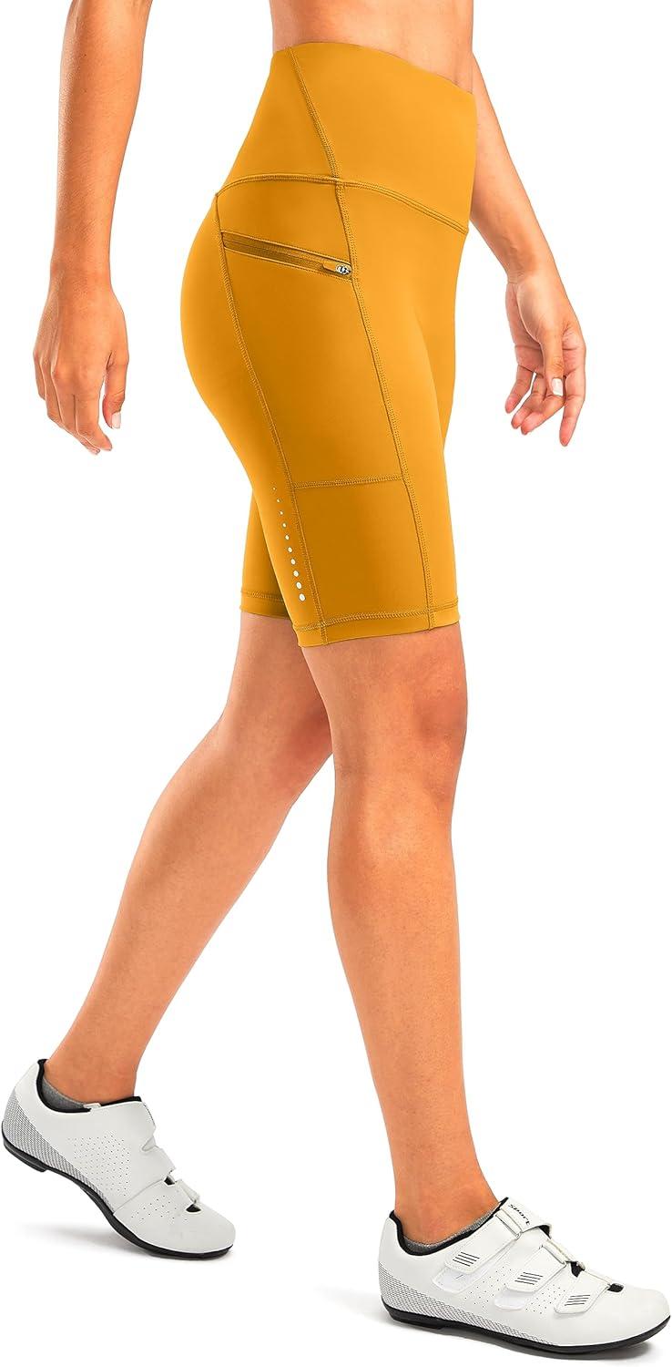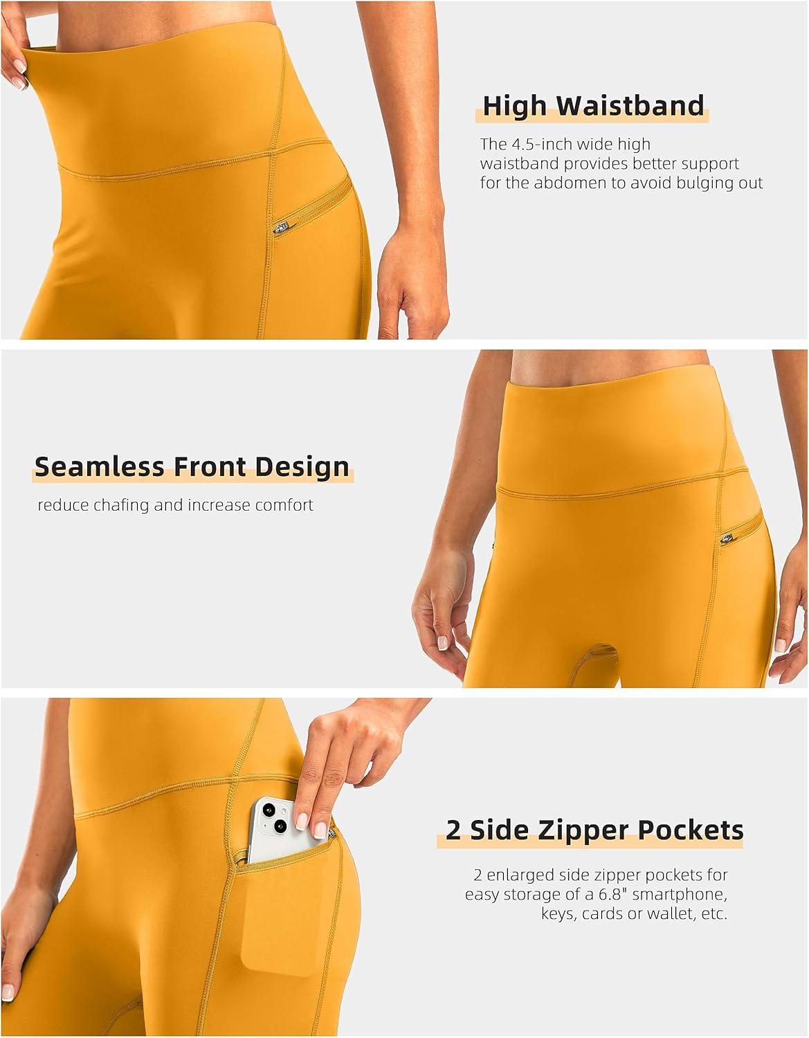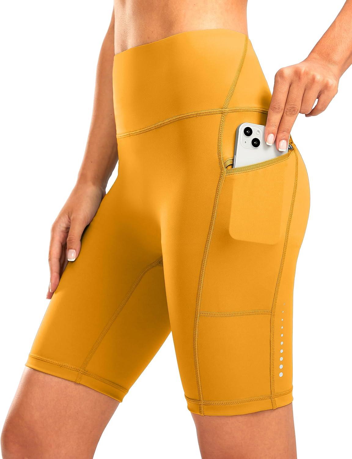Women’s High Waisted Biker Shorts 8″ Running Workout Tummy Control Bike Spandex Shorts for Women Zipper Pockets(Yellow)
