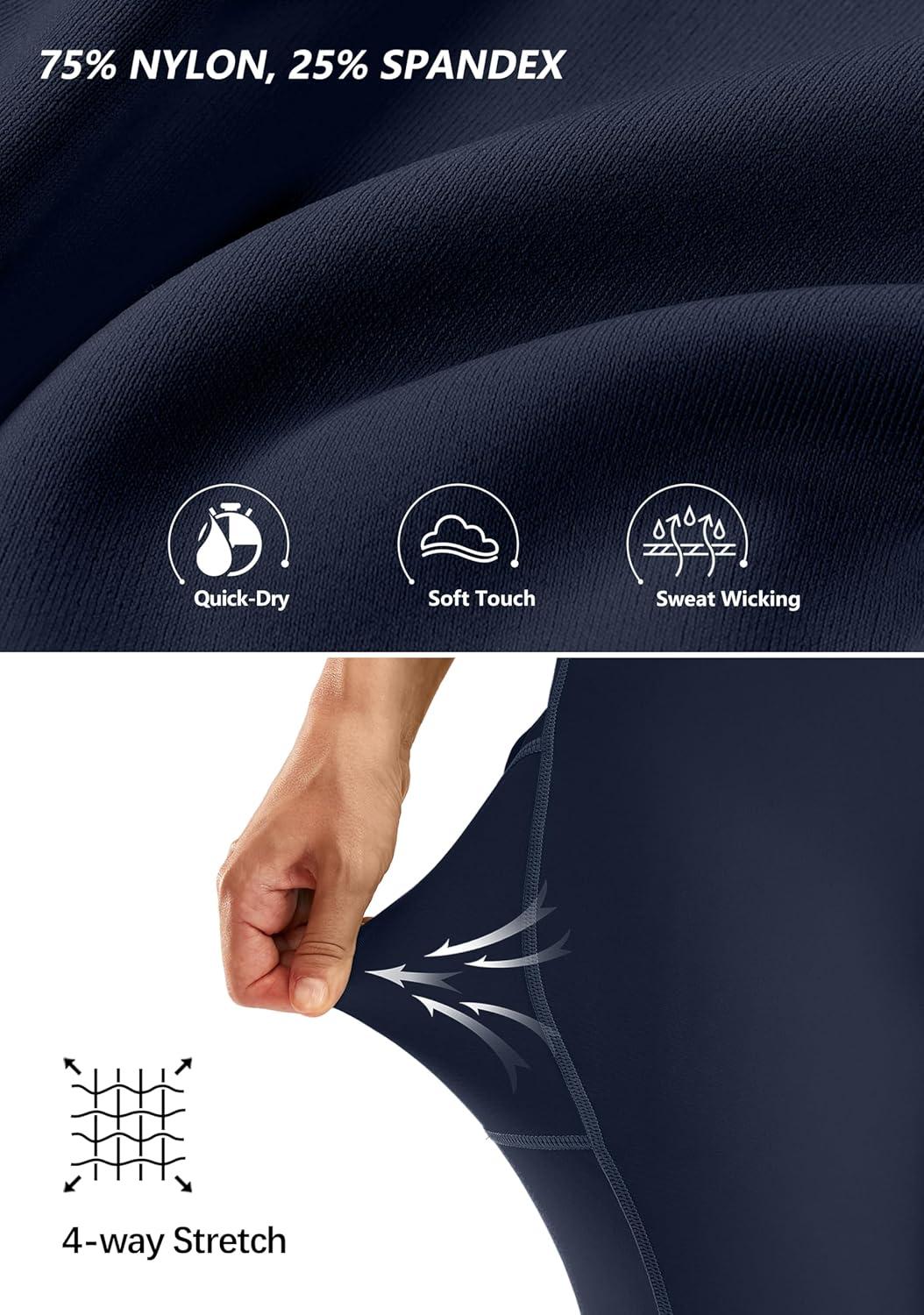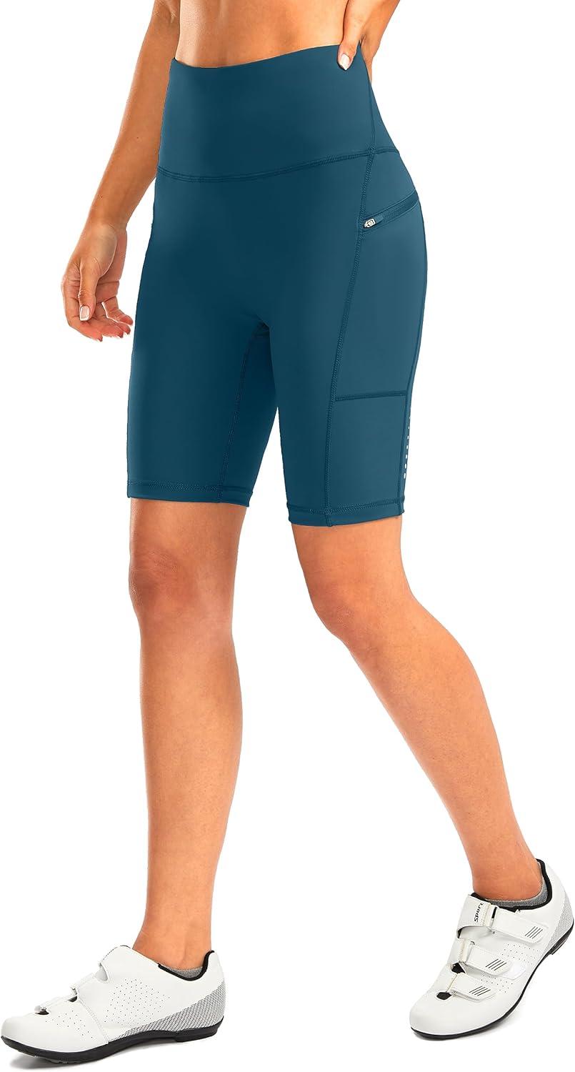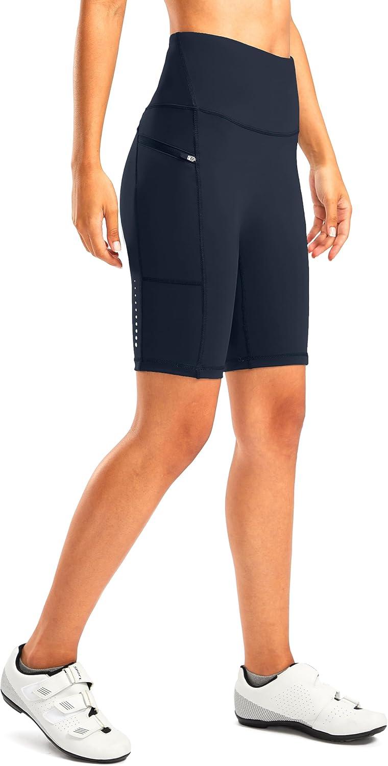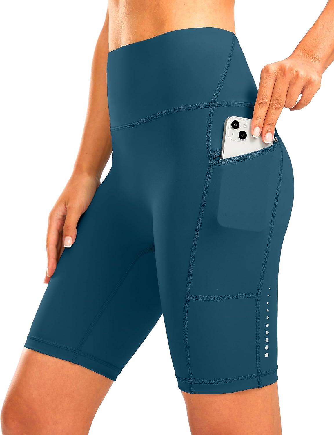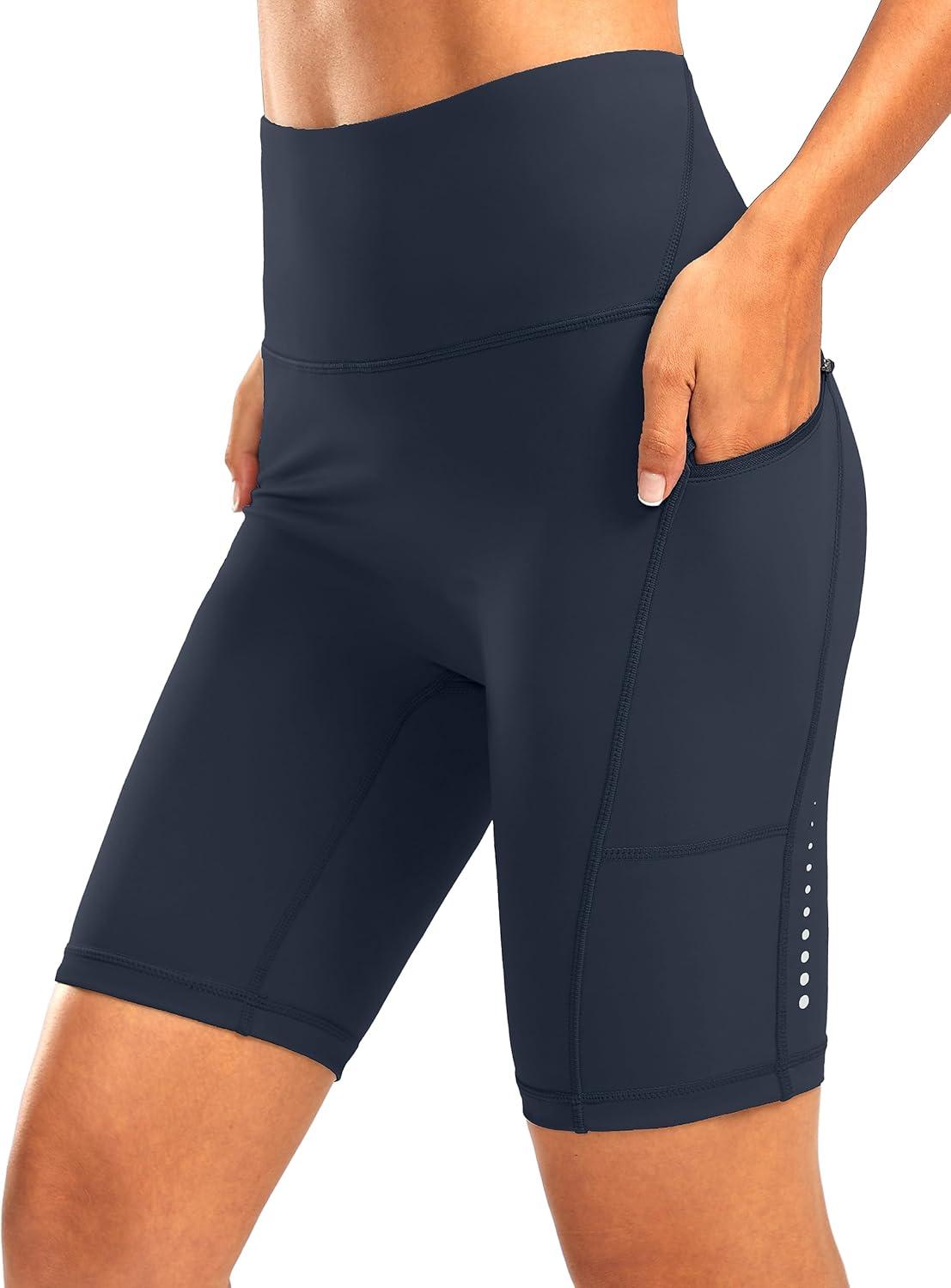 Women’s High Waisted Biker Shorts 8″ Running Workout Tummy Control Bike Spandex Shorts for Women Zipper Pockets(Dark Blue)
