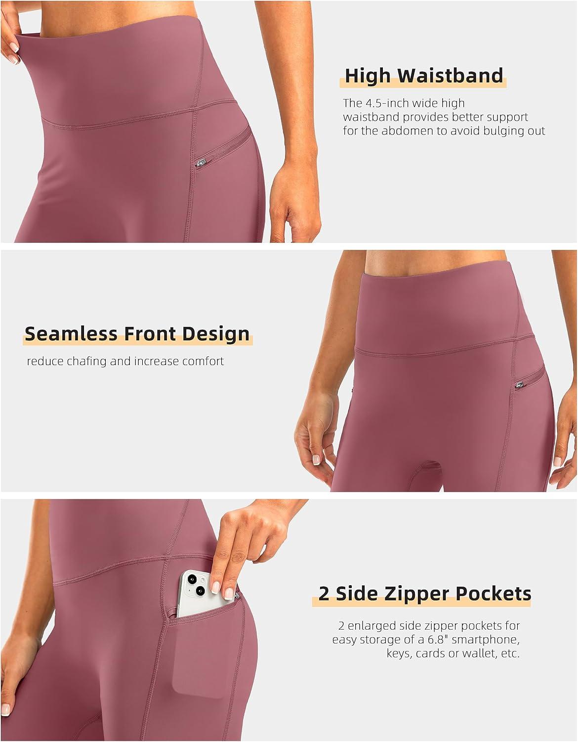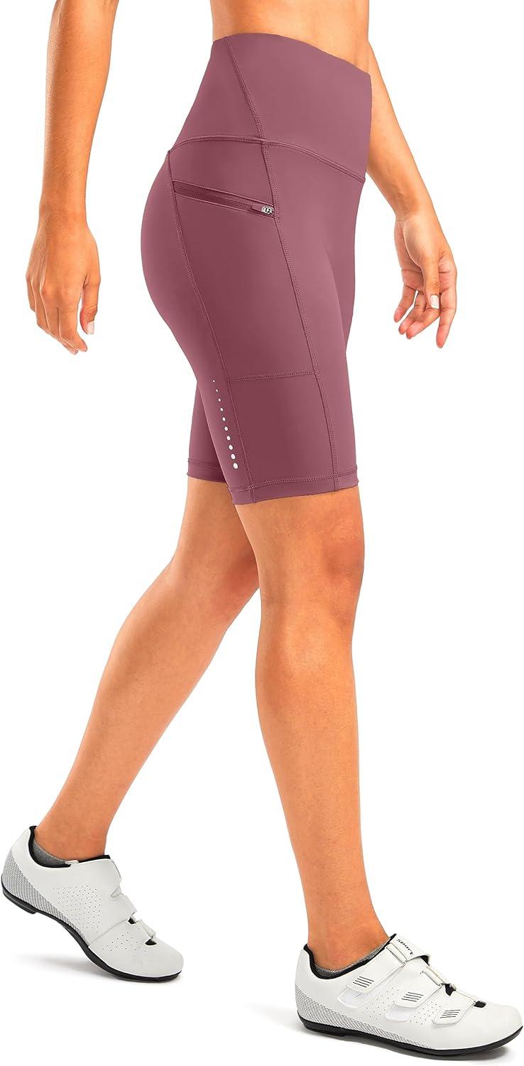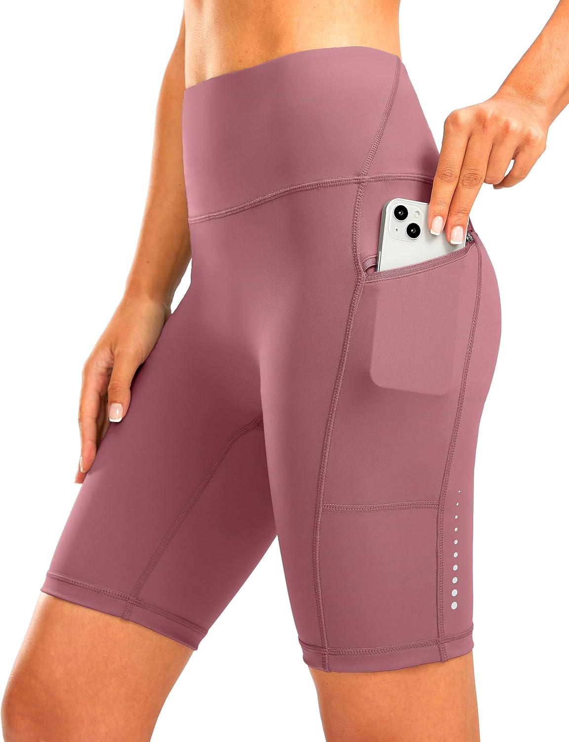 Women’s High Waisted Biker Shorts 8″ Running Workout Tummy Control Bike Spandex Shorts for Women Zipper Pockets(Rose)