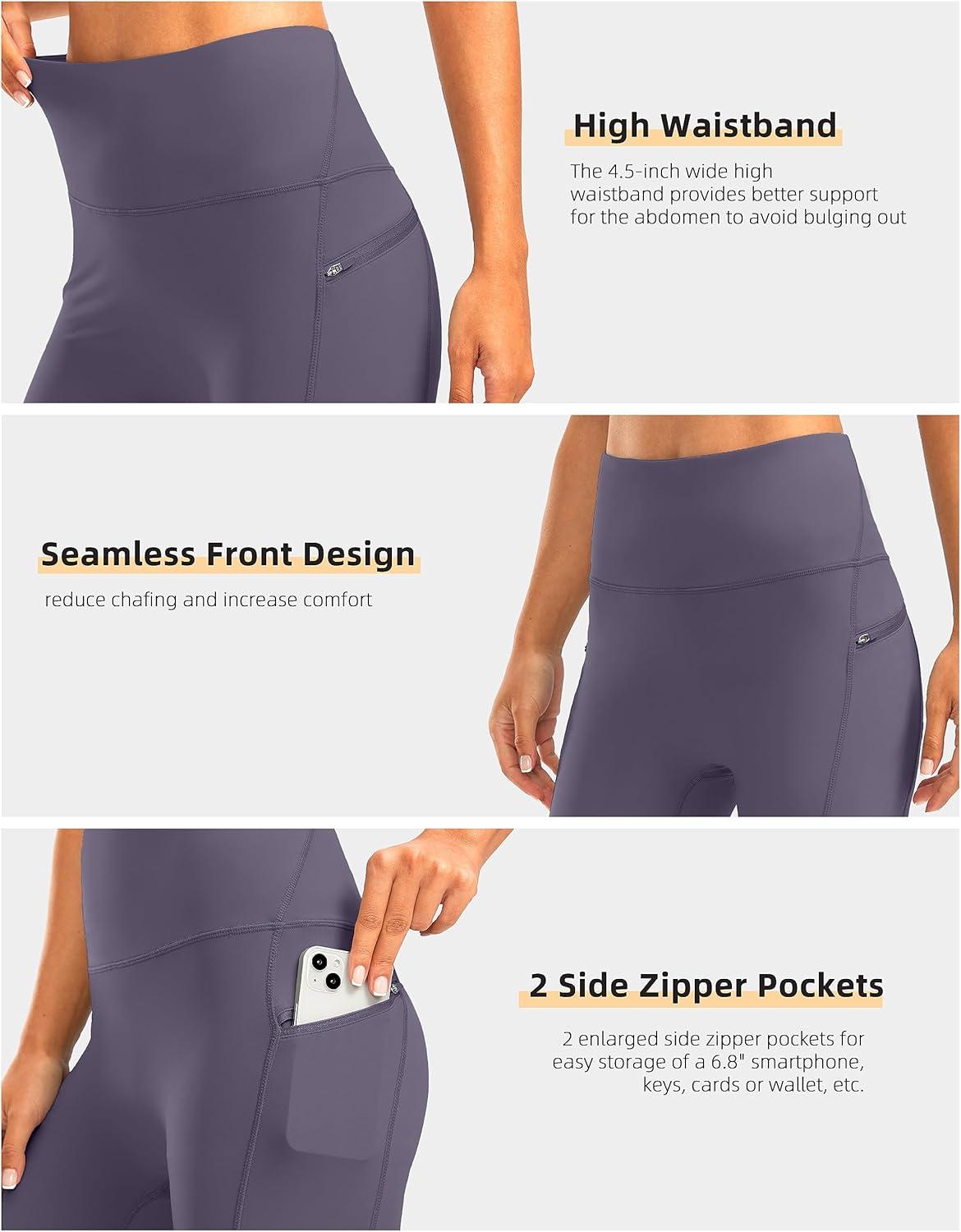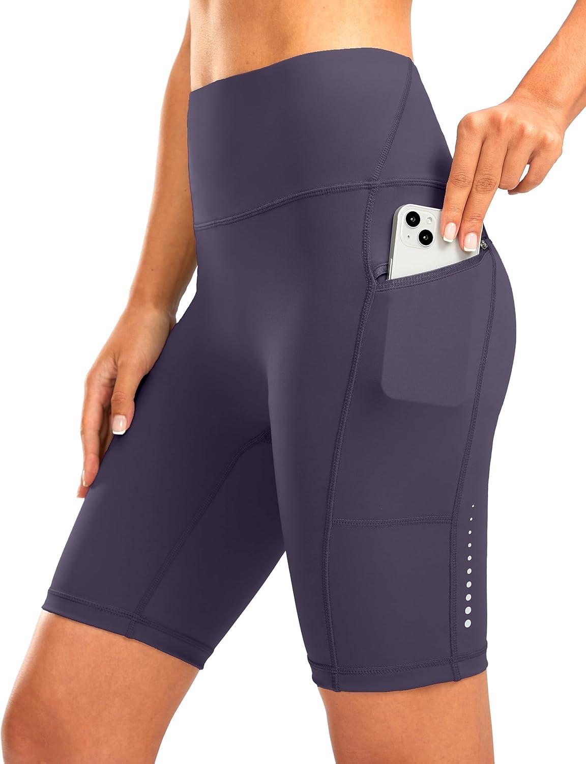 Women’s High Waisted Biker Shorts 8″ Running Workout Tummy Control Bike Spandex Shorts for Women Zipper Pockets(Dusty Purple)