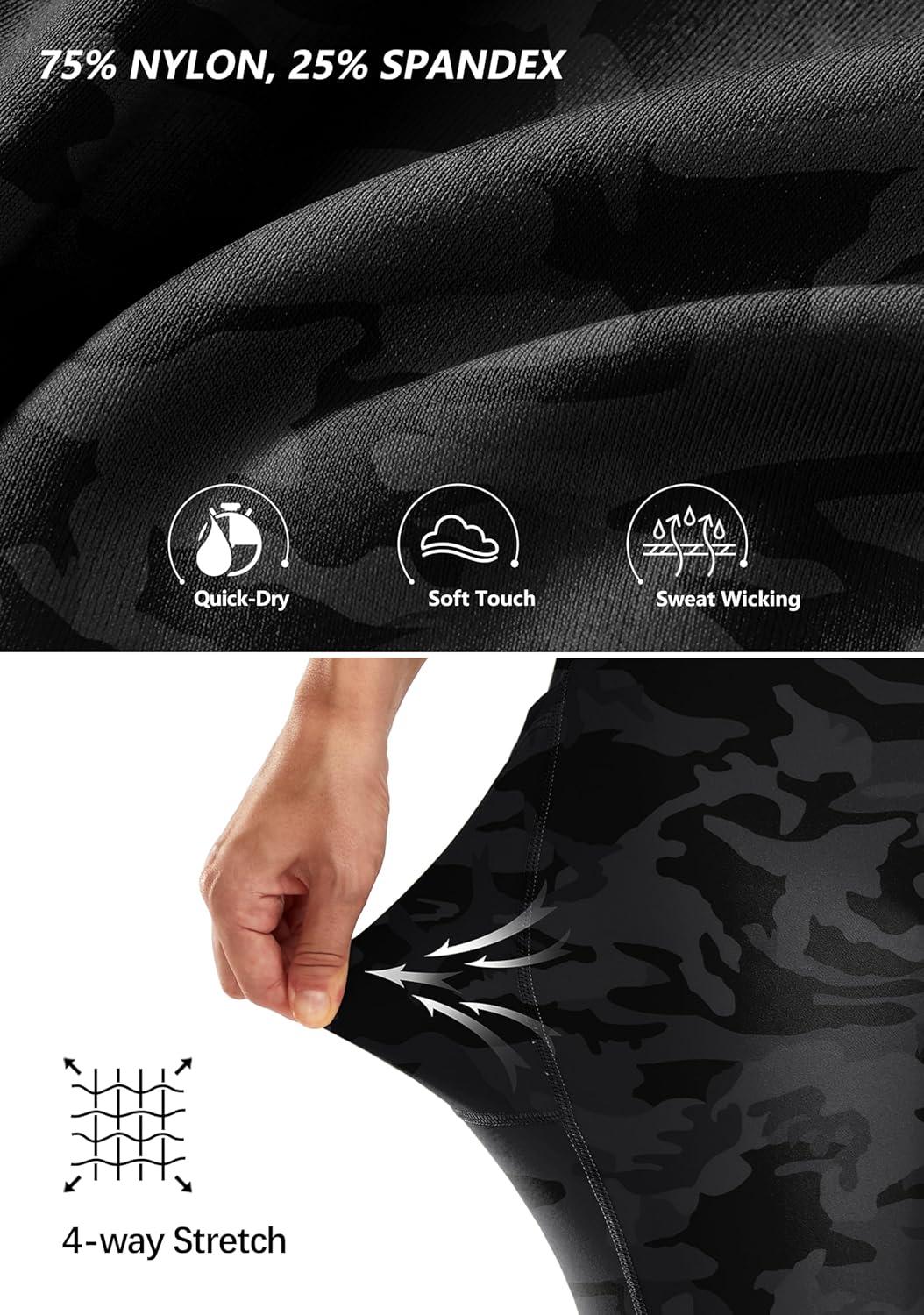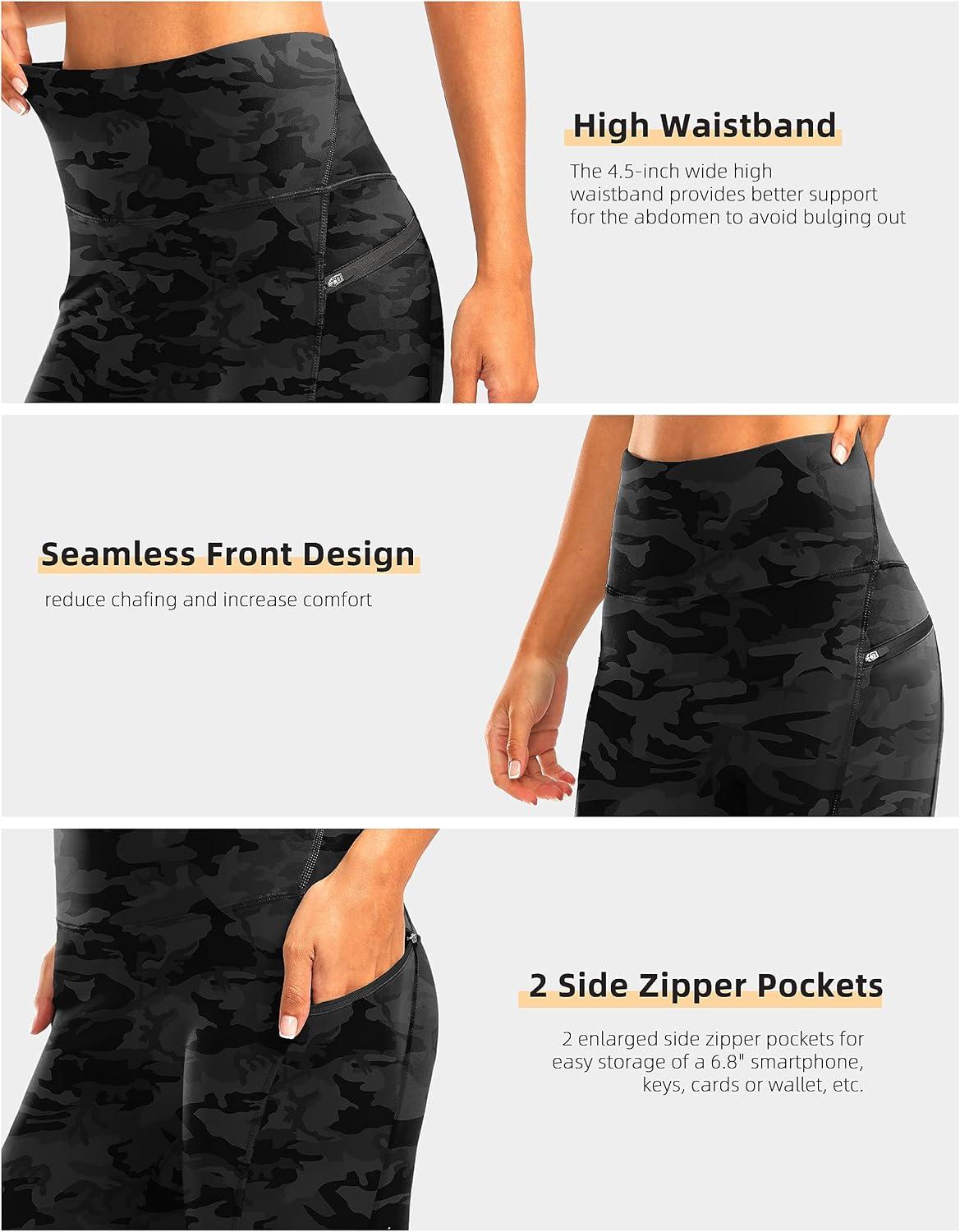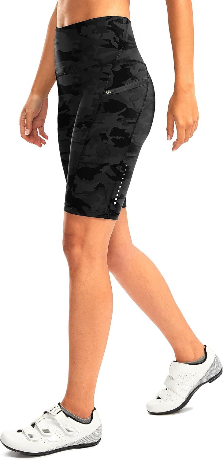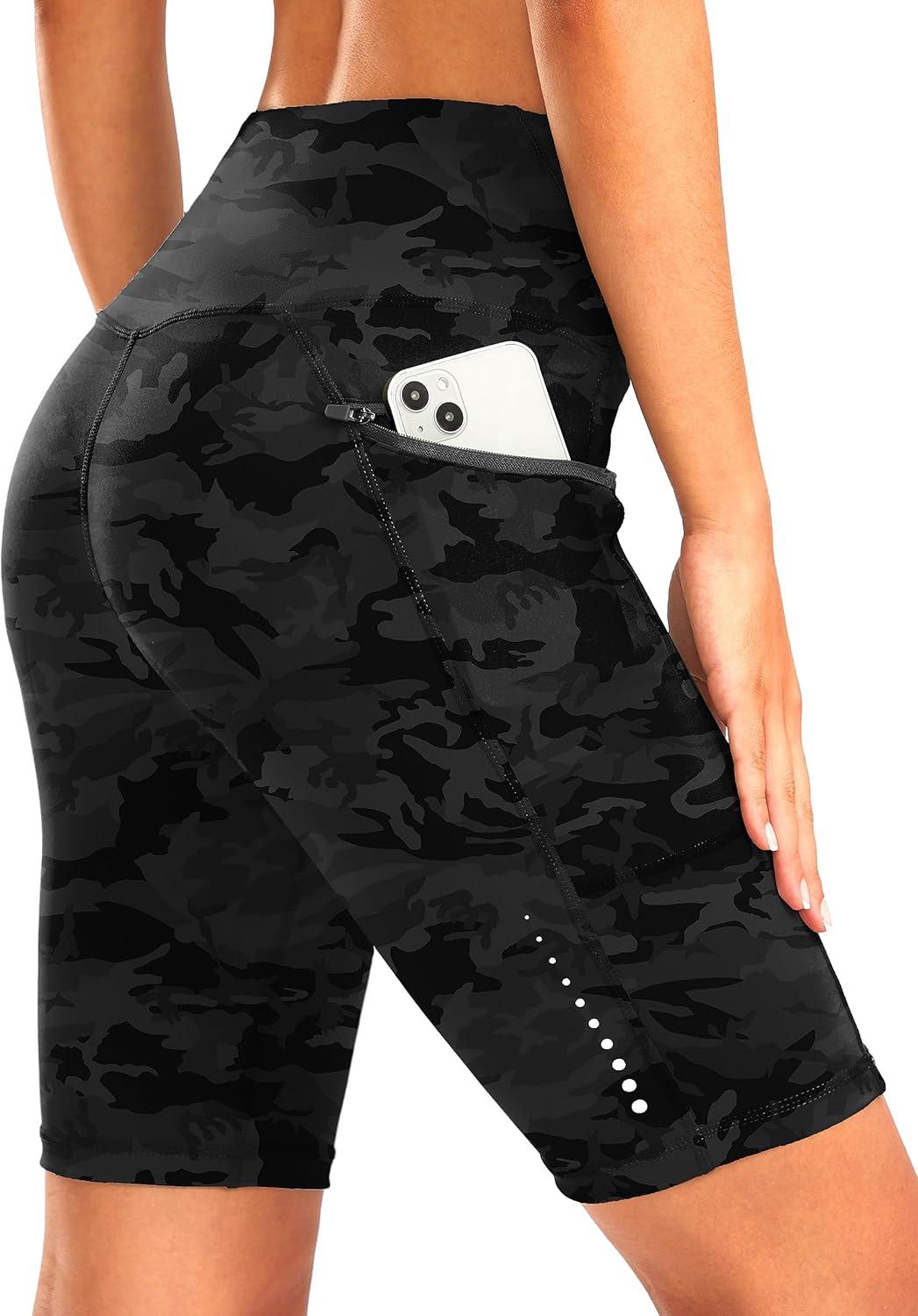 Women’s High Waisted Biker Shorts 8″ Running Workout Tummy Control Bike Spandex Shorts for Women Zipper Pockets(Grey Camo)