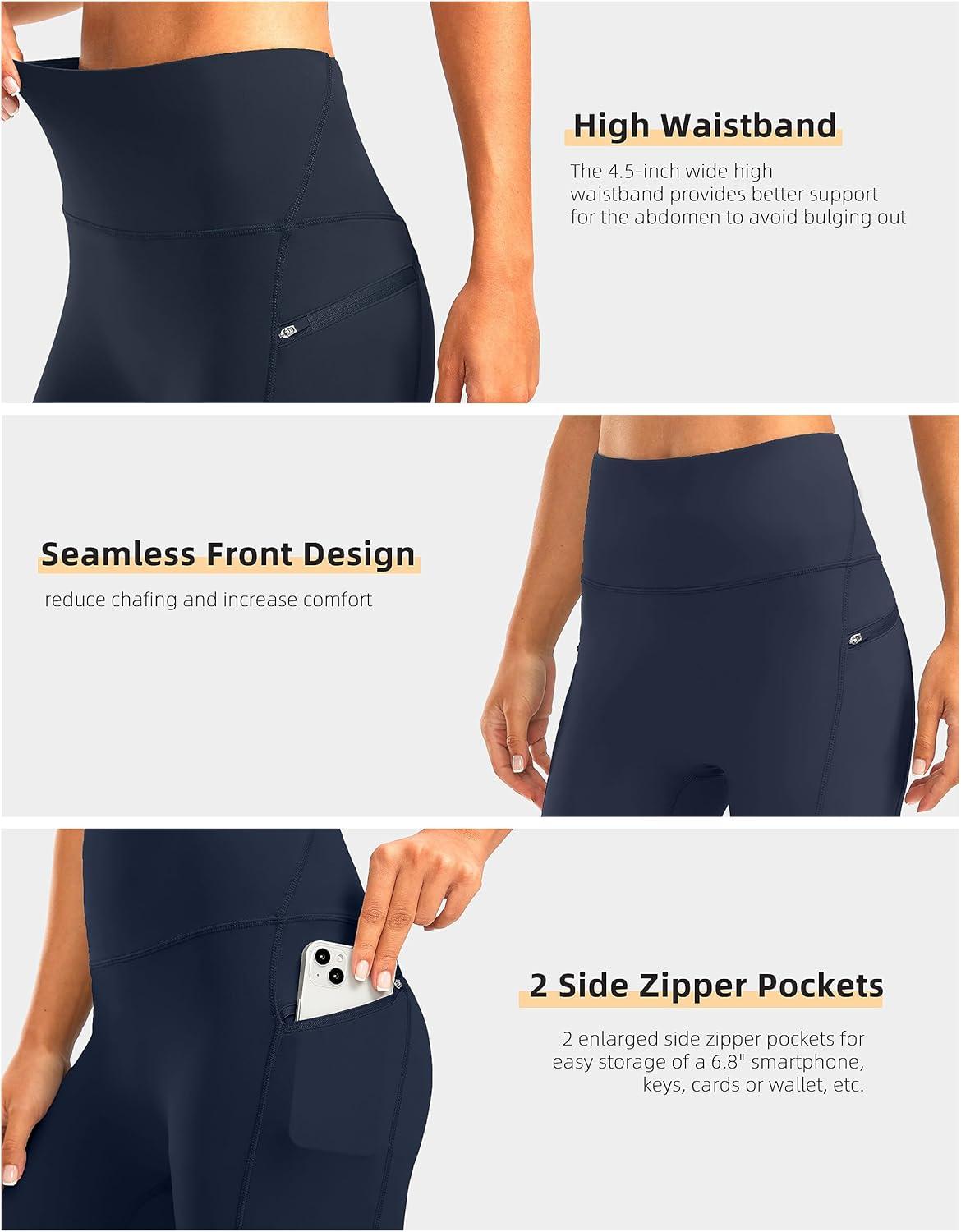 Women’s High Waisted Biker Shorts 8″ Running Workout Tummy Control Bike Spandex Shorts for Women Zipper Pockets(Navy)