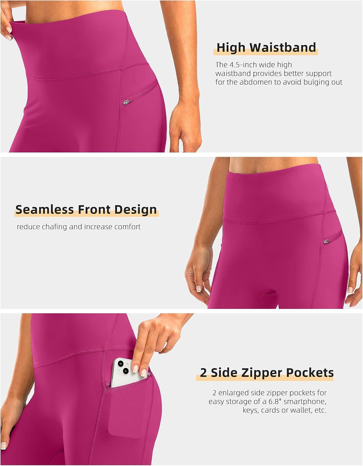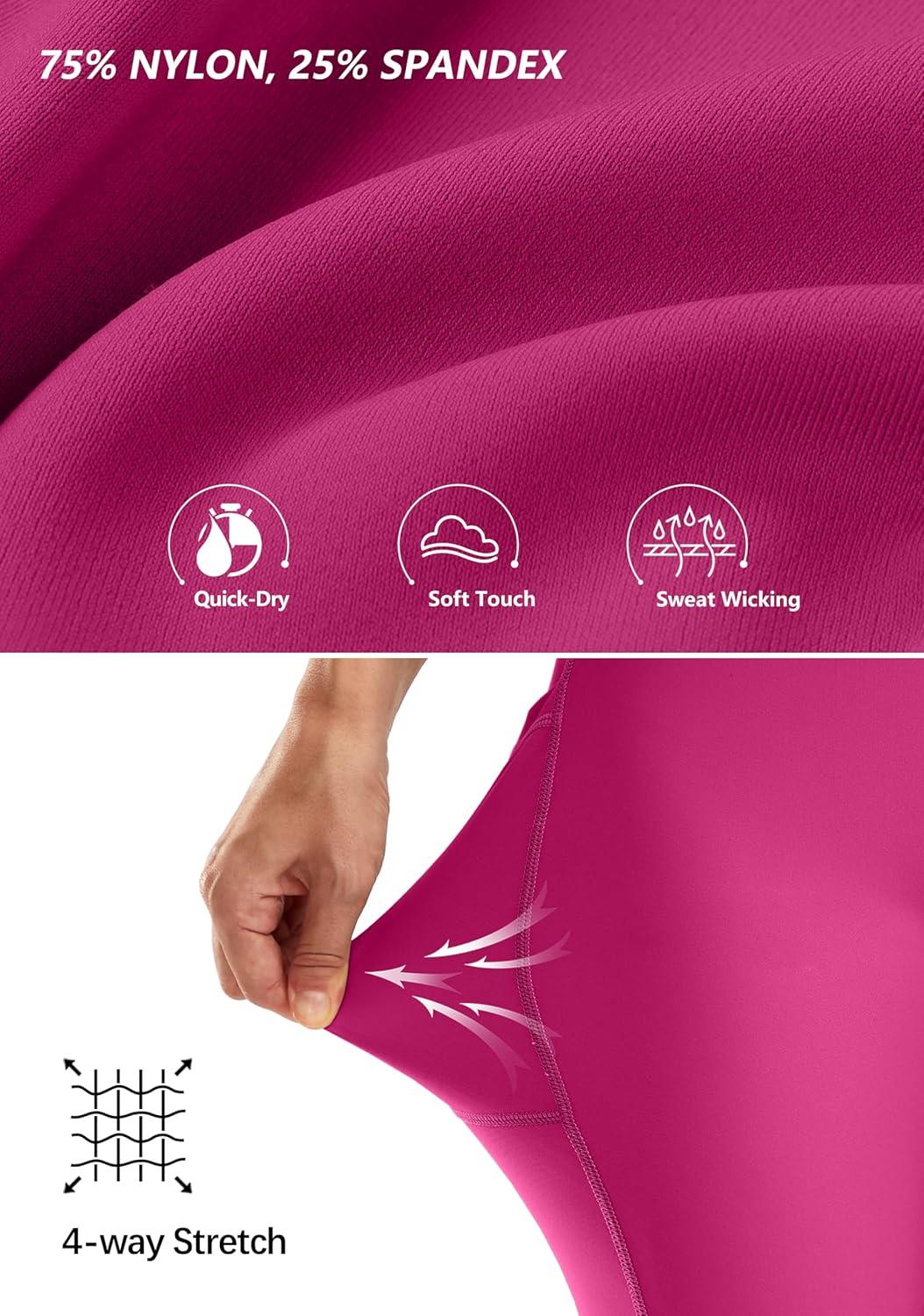 Women’s High Waisted Biker Shorts 8″ Running Workout Tummy Control Bike Spandex Shorts for Women Zipper Pockets(Dark Pink)