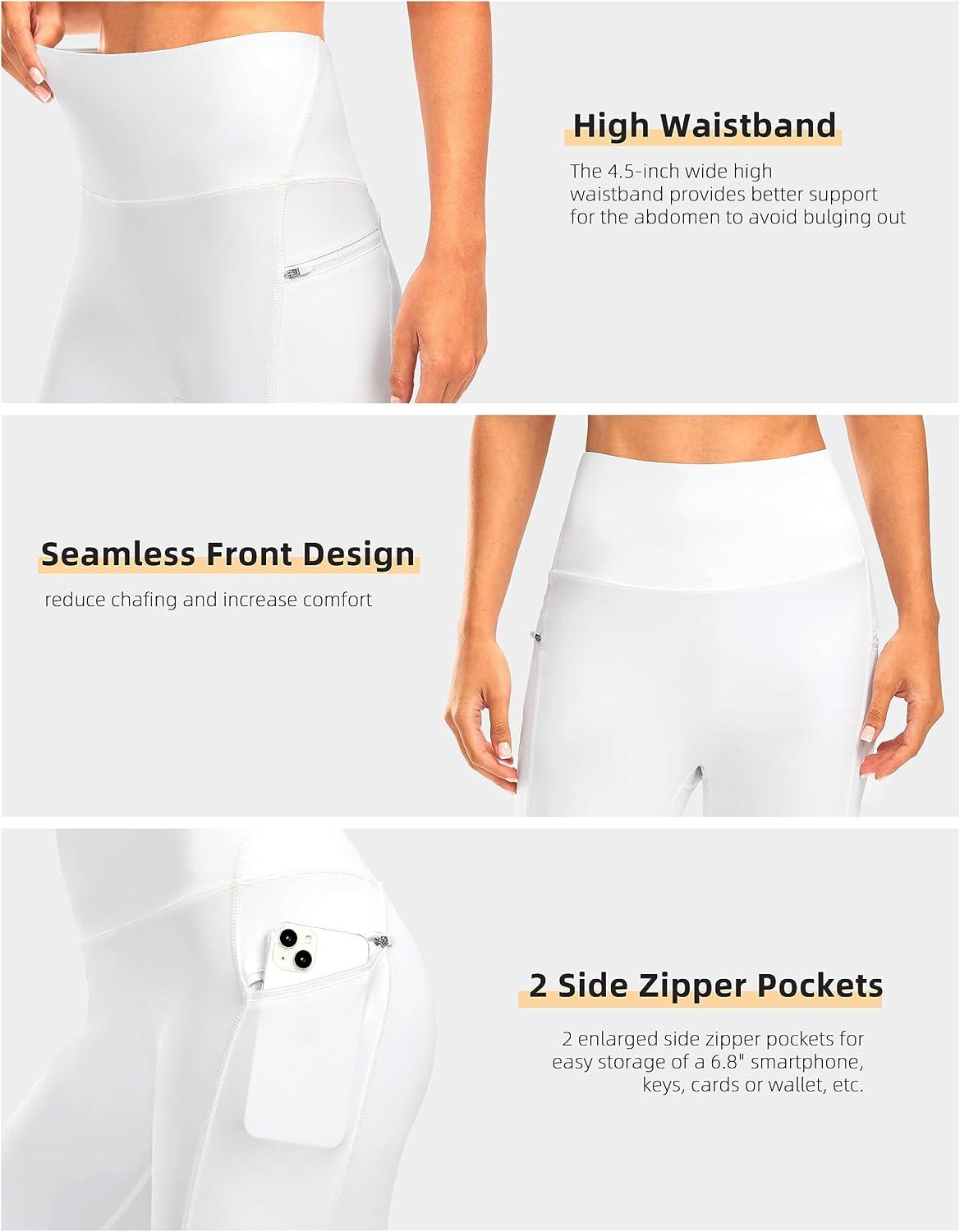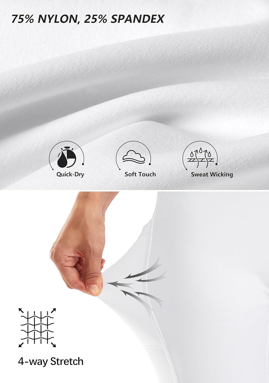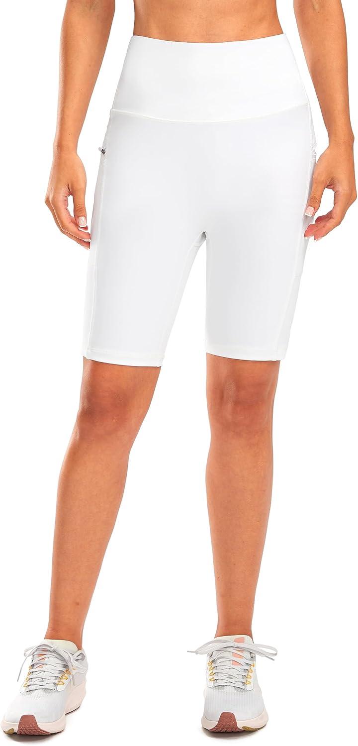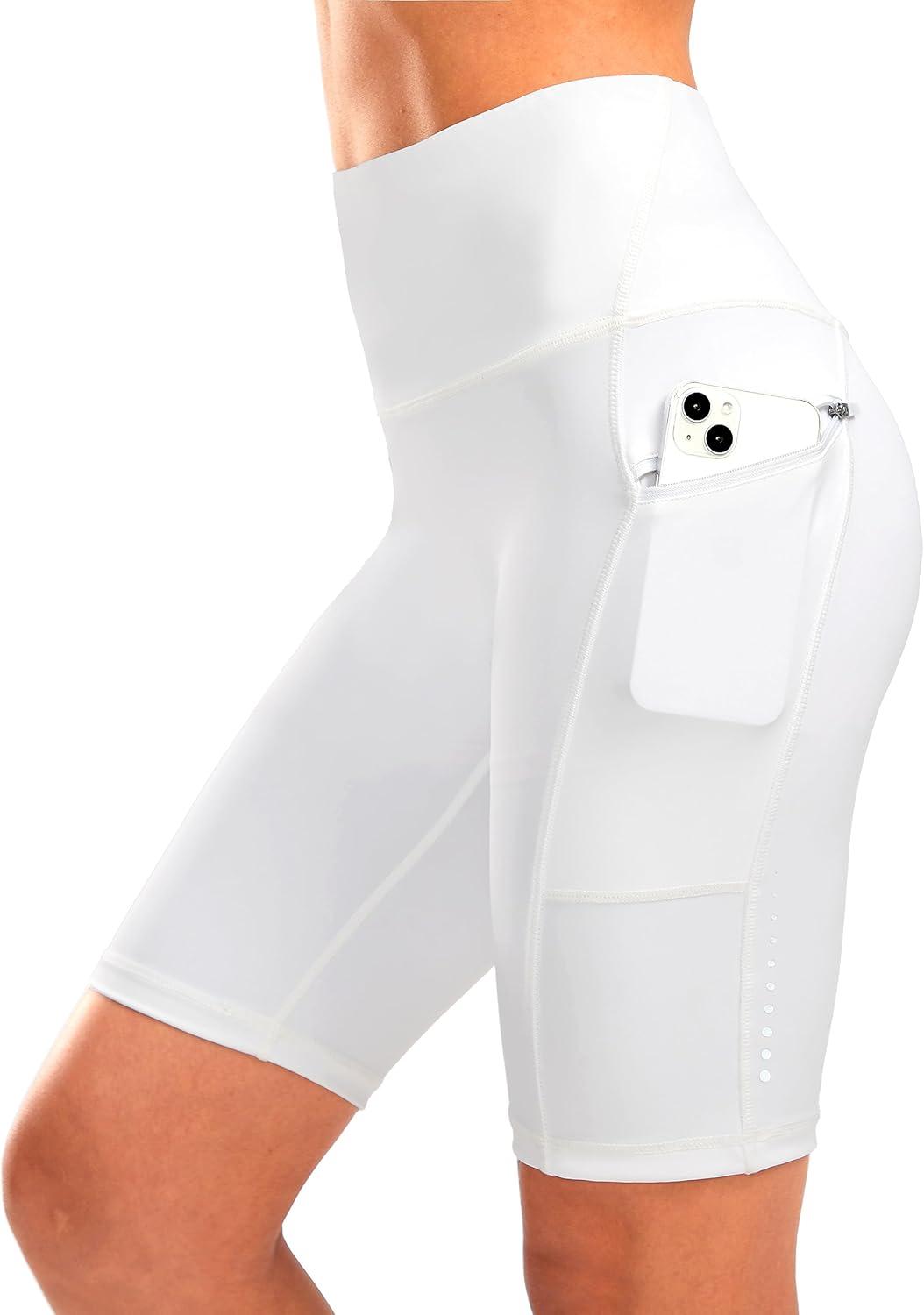 Women’s High Waisted Biker Shorts 8″ Running Workout Tummy Control Bike Spandex Shorts for Women Zipper Pockets(White)