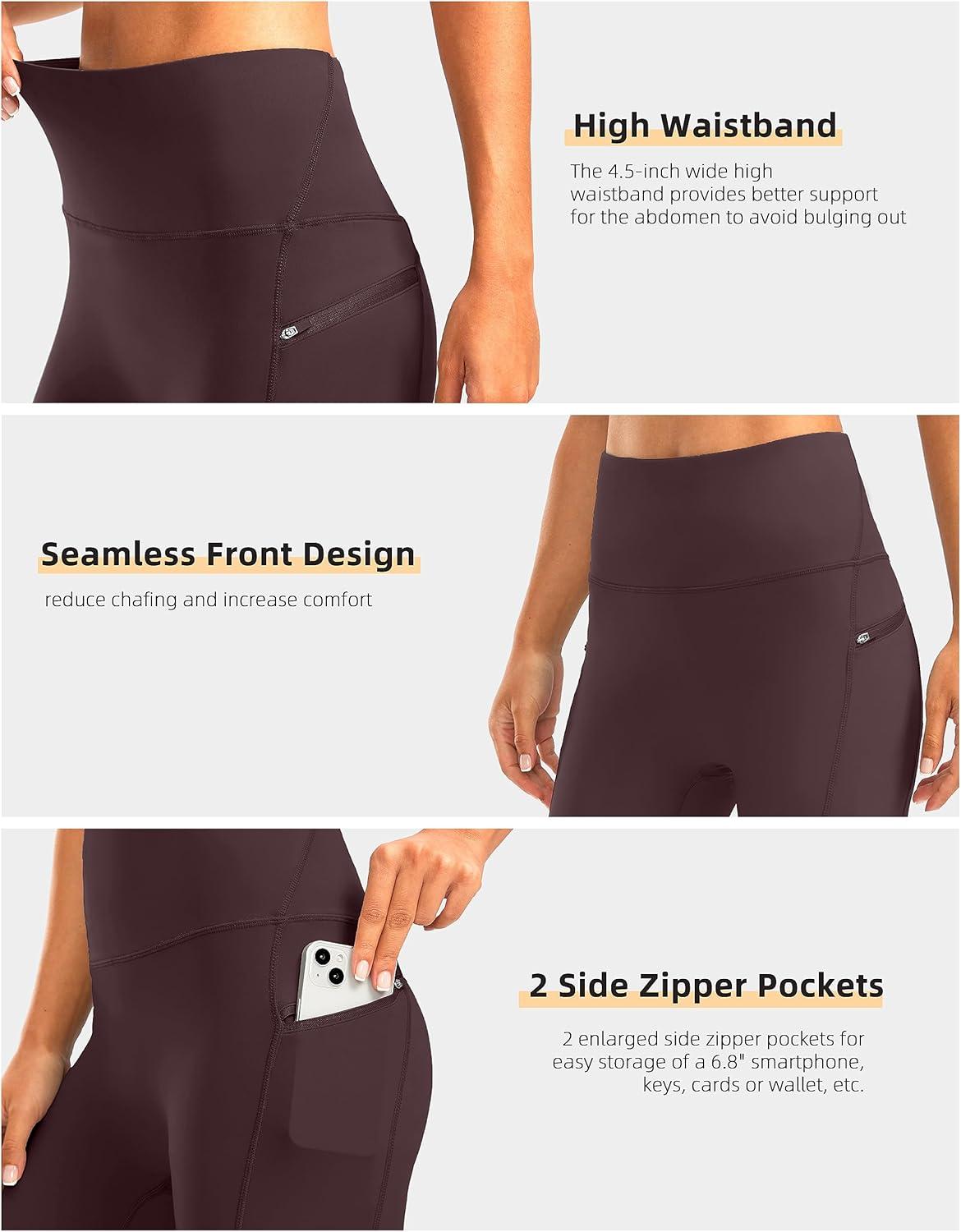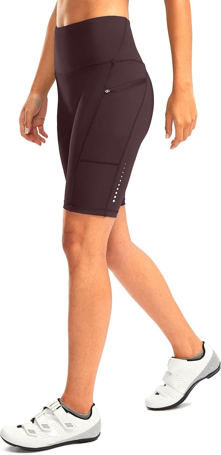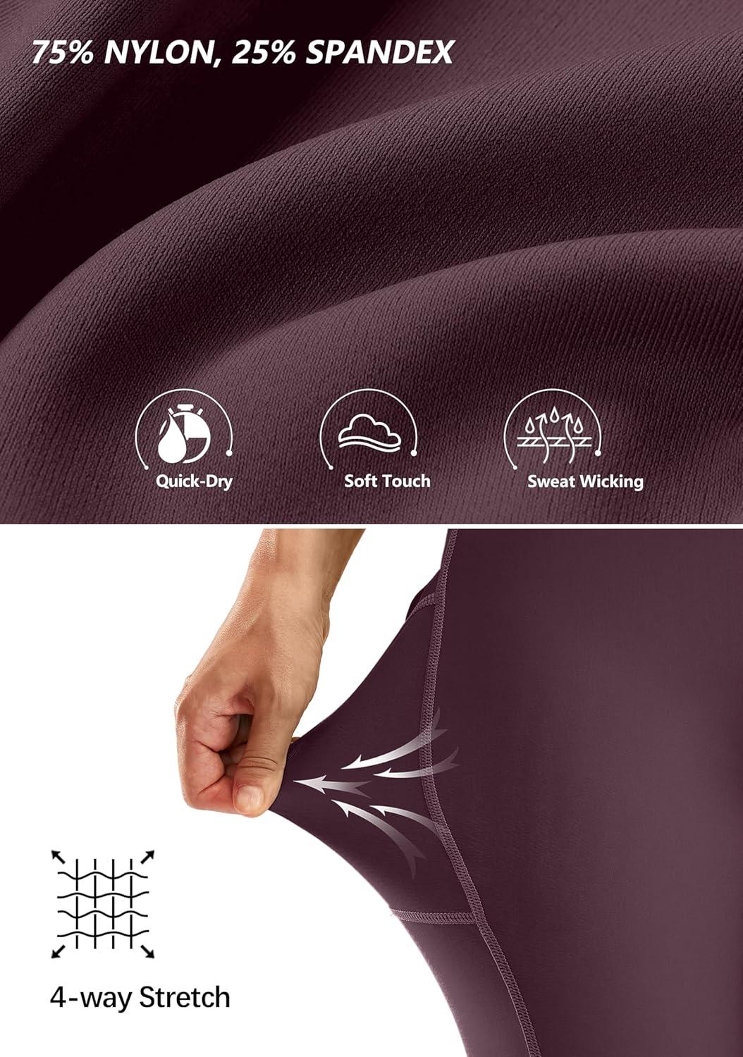 Women’s High Waisted Biker Shorts 8″ Running Workout Tummy Control Bike Spandex Shorts for Women Zipper Pockets(Wine)