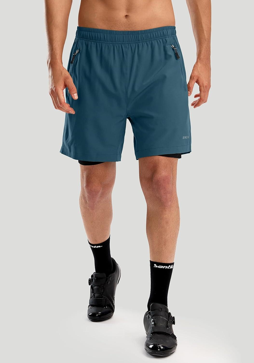 Bikewa Men’s Bike Shorts 4D Padded Biking Road Cycling Bicycle Pants Biker Shorts for Men Zipper Pockets(1_ Orange)