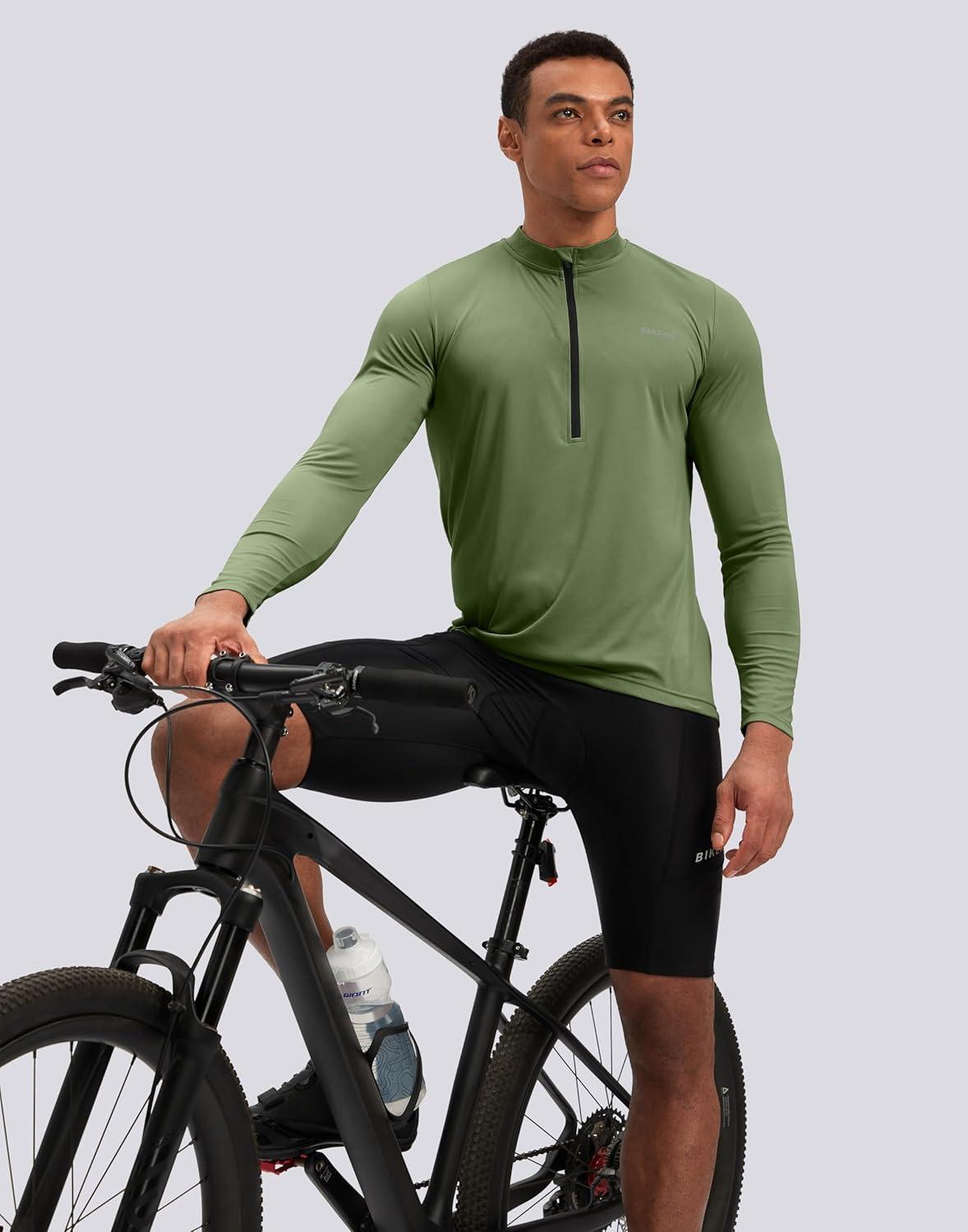 Bikewa Men’s Cycling Jersey with 3+1 Rear Zipper Pockets Long Sleeve Moisture Wicking UPF 50+ Half Zip Riding Bike Shirts(Olive)