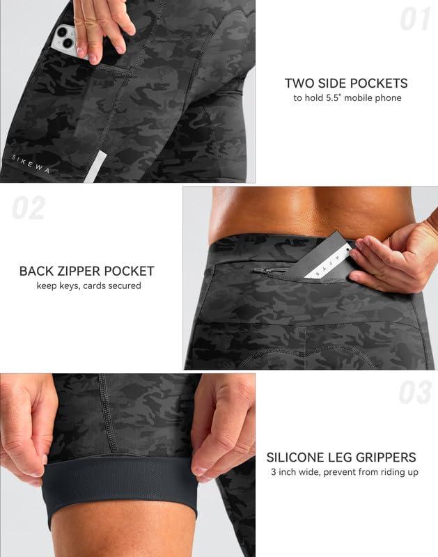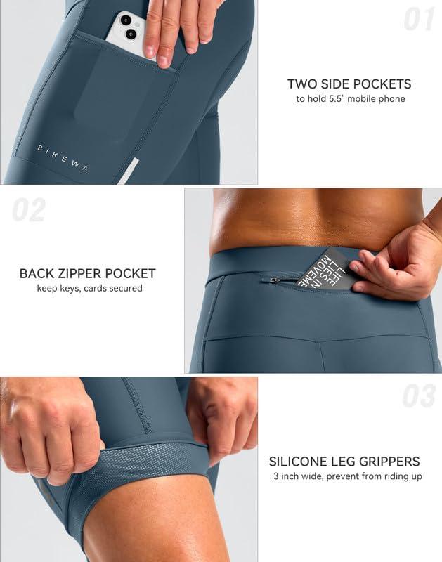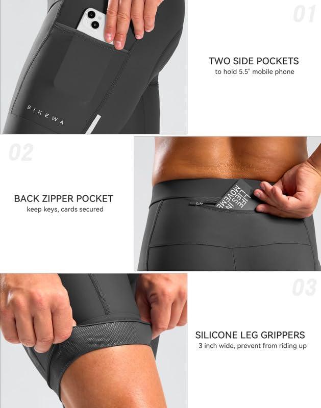 Bikewa Men’s Mountain Bike Shorts 3D Padded Loose-fit Biking Riding Cycling Bicycle Biker Shorts Zipper Pockets(Green)